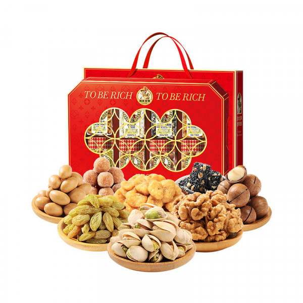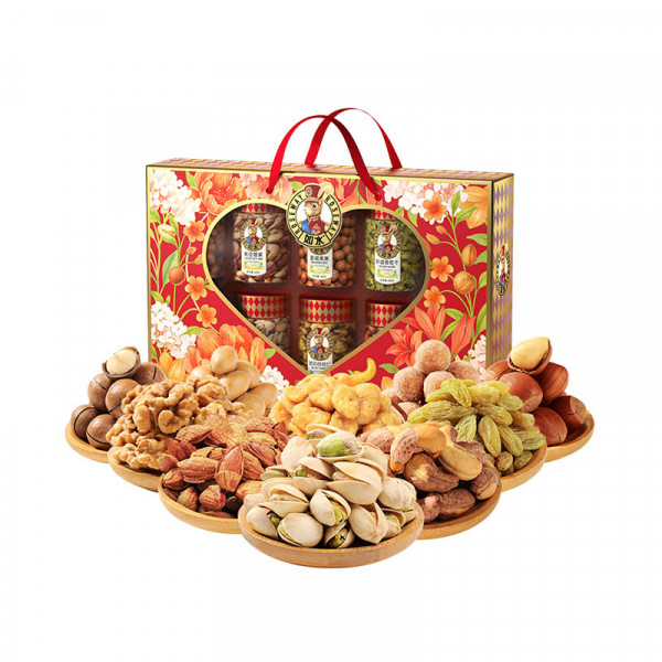 (超运·禾贸)如水鎏金繁花·红福礼盒1508g 春节高端严选干果礼盒 送人送礼送客户送长辈