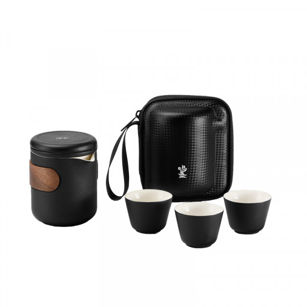 (超运·禾贸)鸣盏陶瓷快客杯MZ8004 旅行茶具便携功夫茶具套装快客杯茶壶陶瓷茶杯功夫茶杯户外 一壶3杯