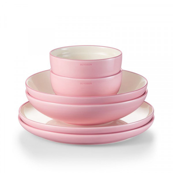 (巨邦佑)R+北鼎团圆桃夭陶瓷餐具(6件)12cm碗*2&20cm深盘*2&22cm平盘*2