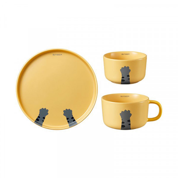 (巨邦佑)R+北鼎猫爪餐具套装(3头)陶瓷碗盘马克杯整套早餐送礼 (下单前备注颜色或联系客服)