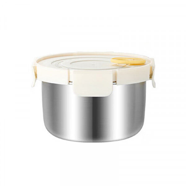 (巨邦佑)BJ+物芯质造304不锈钢保鲜饭盒700ml 米色咖色 可拆卸内胆密封保鲜容易清洗隔热防烫