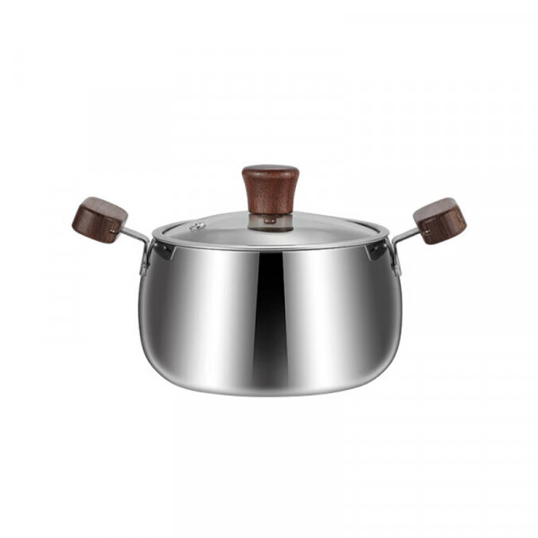 (巨邦佑)BJ+物芯质造 316L迷你小汤锅 实木防烫手柄不锈钢小汤锅易清洗