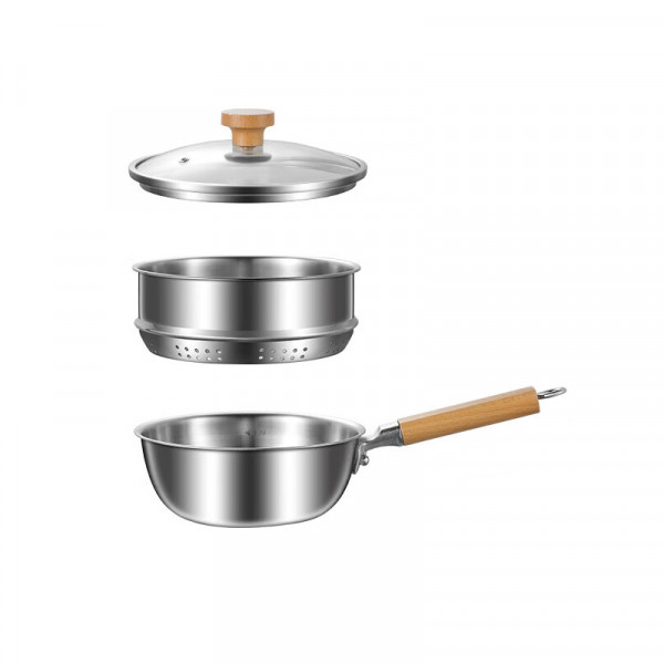 (巨邦佑)BJ+物芯质造 赛马316三层钢小炒锅20cm+蒸格 健康0涂层