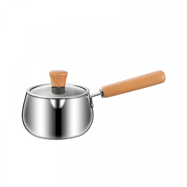 (巨邦佑)BJ+物芯质造Smart316不锈钢小奶锅 榉木柄胡桃木炳辅食锅汤锅泡面蒸锅燃气电磁炉