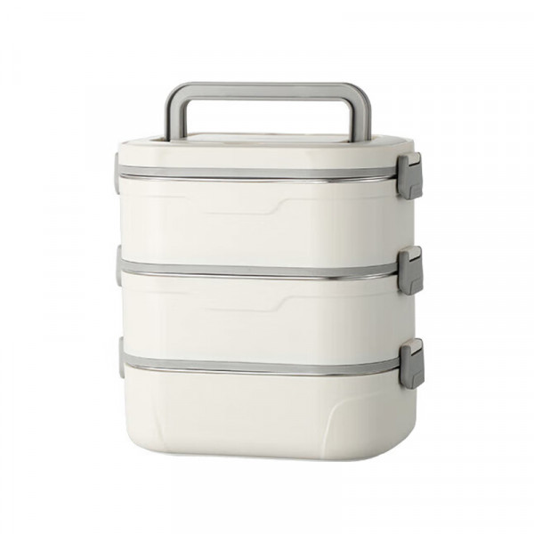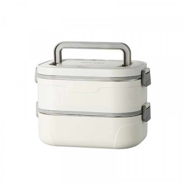 (巨邦佑)BJ+物芯质造多层方形饭盒 米白单层13*14.5*5.6cm双层三层可选316不锈钢大容量密封防漏轻易便携