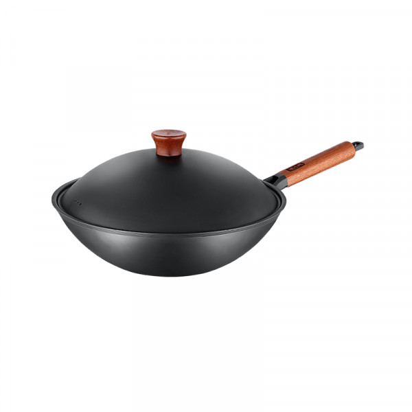 (康恩)张小泉万家简品精铁炒锅C30330100无涂层爆炒精铁锅不易锈带盖32cm