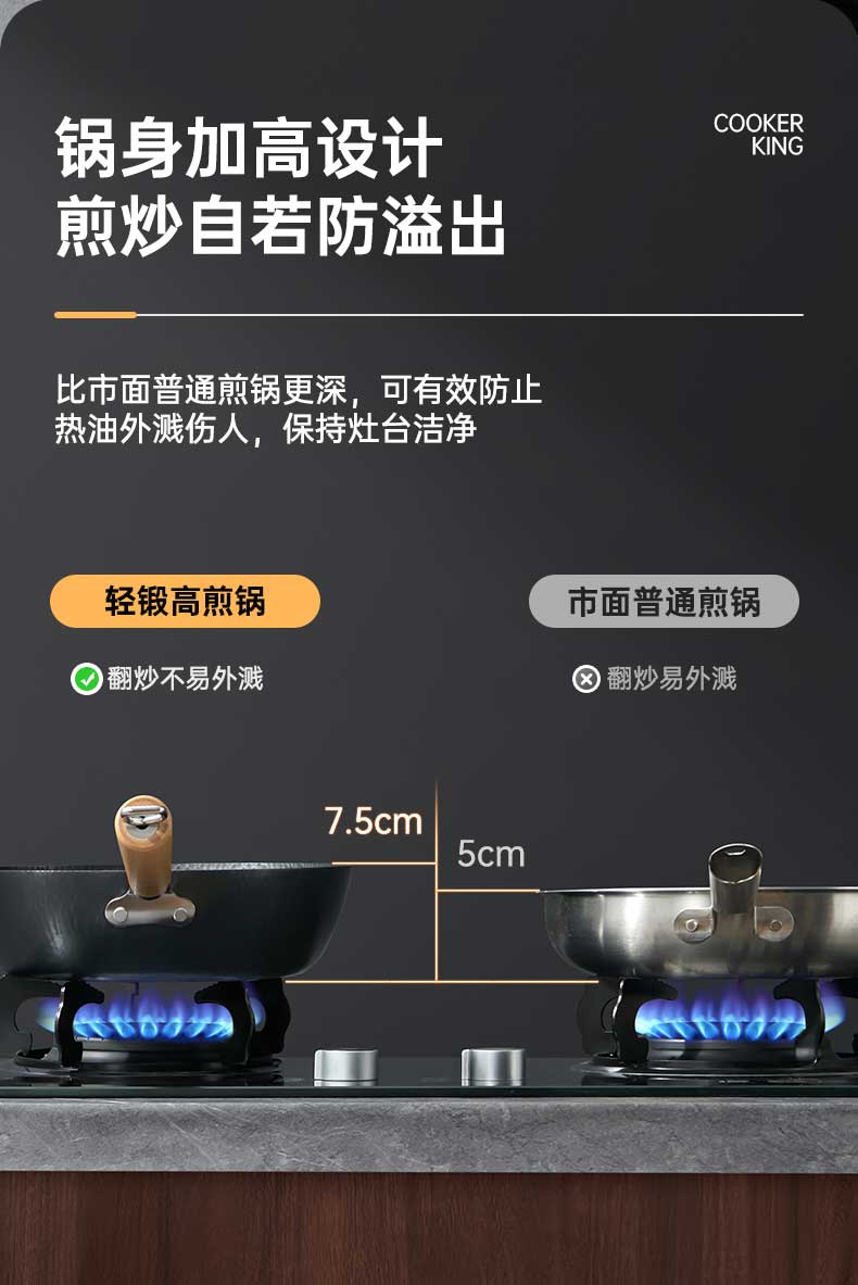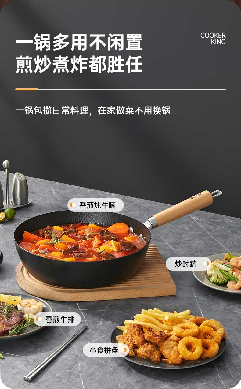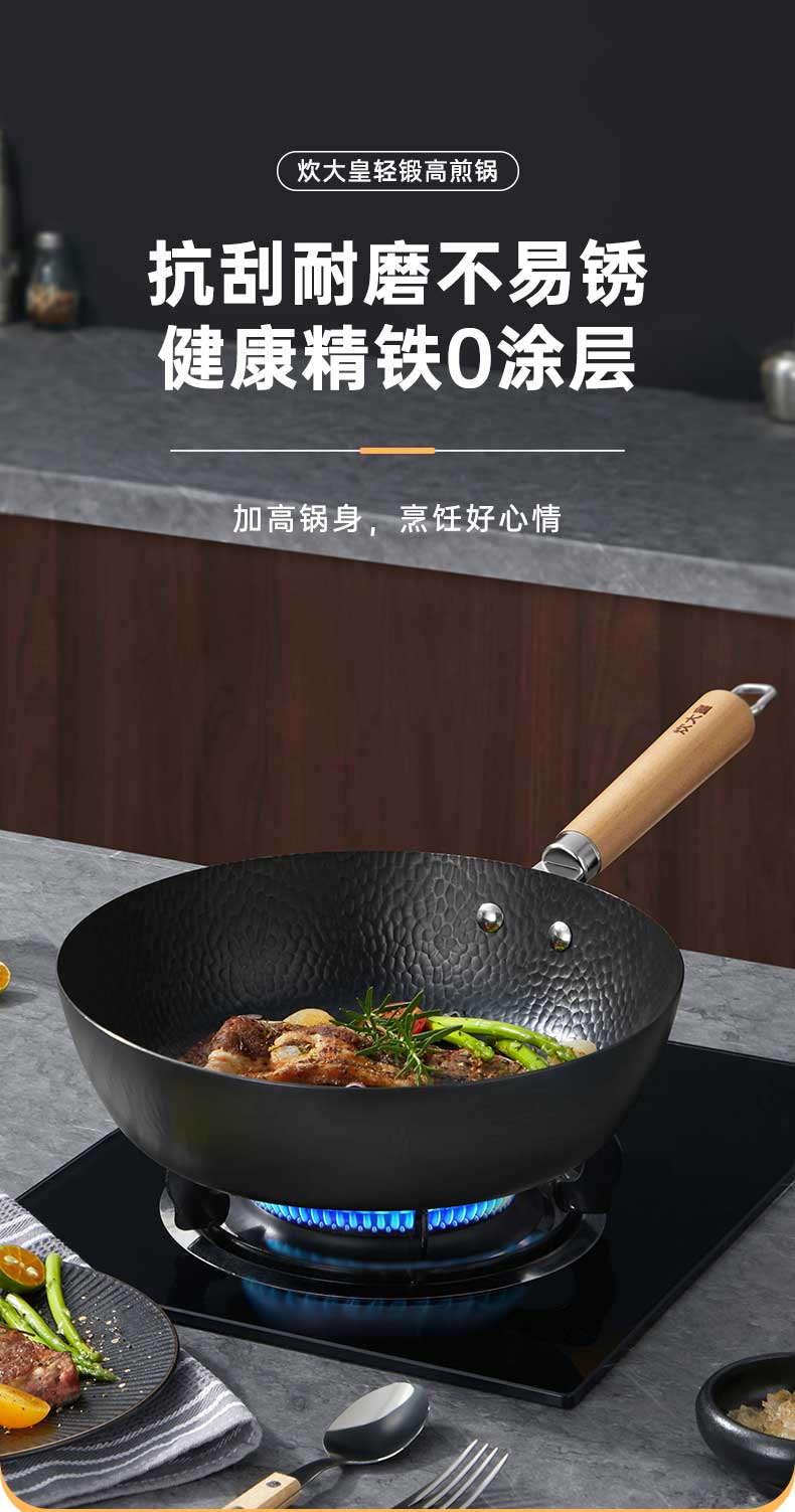 (中合誉品)炊大皇轻锻高煎锅28CMJG28QD 精铁0涂层可用铁铲