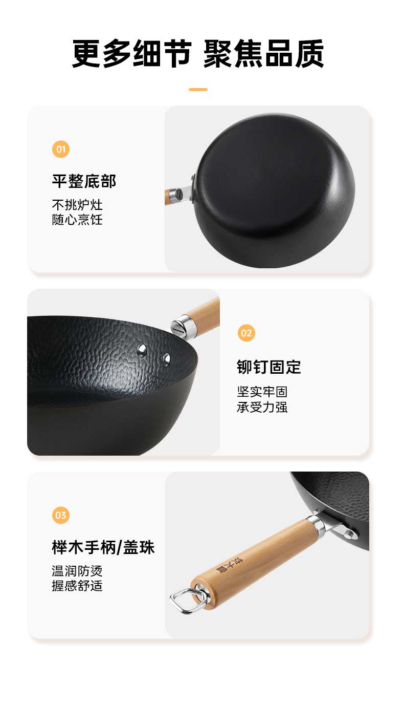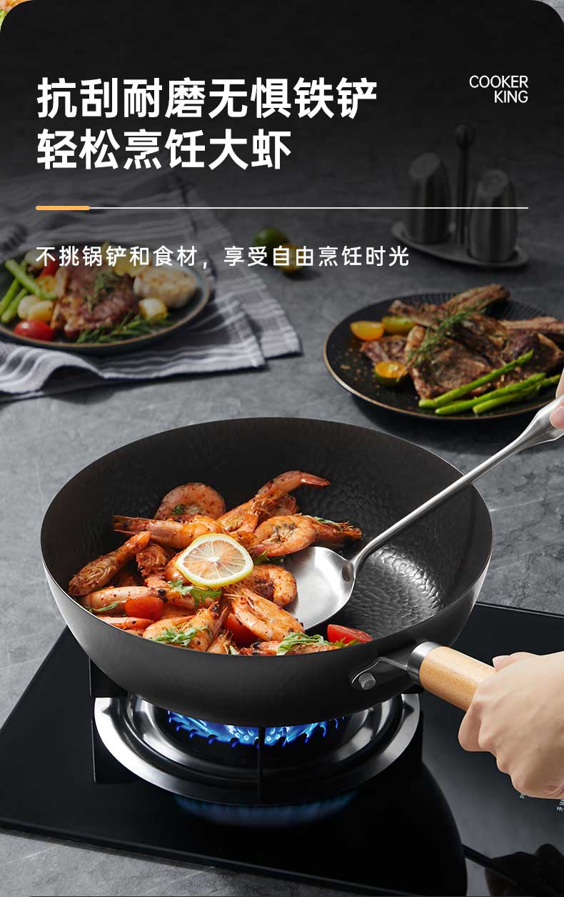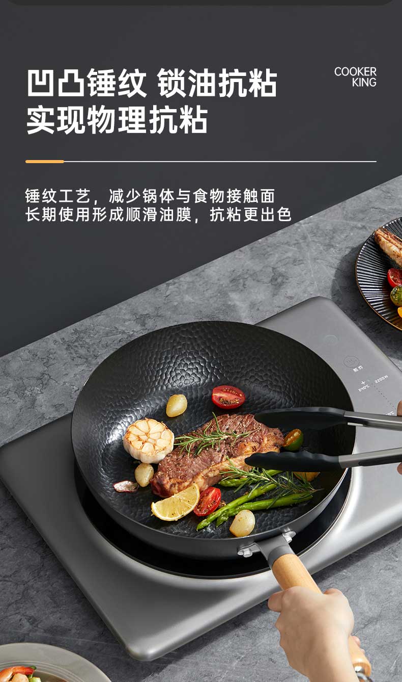 (中合誉品)炊大皇轻锻高煎锅28CMJG28QD 精铁0涂层可用铁铲