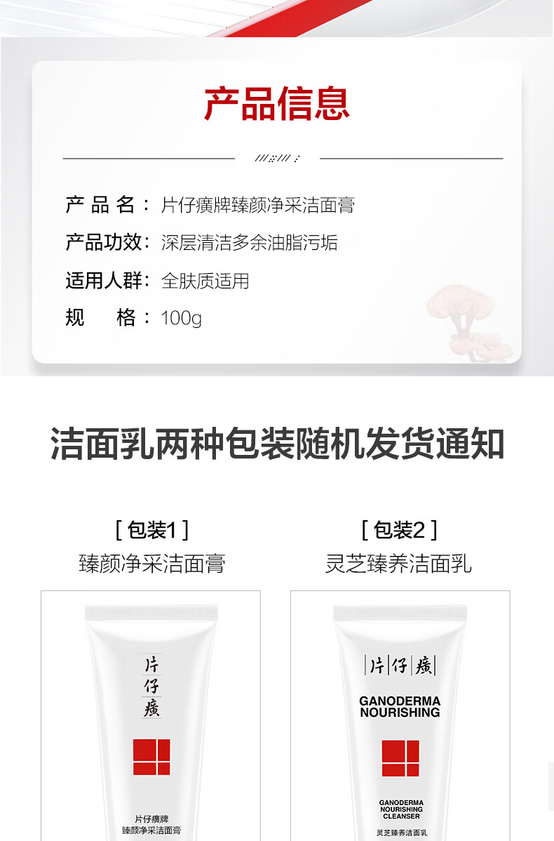 商品名称:(超运·禾贸)片仔癀牌臻颜净采洁面膏(灵芝洁面)100g 深层清洁洗面奶洁面膏护肤品