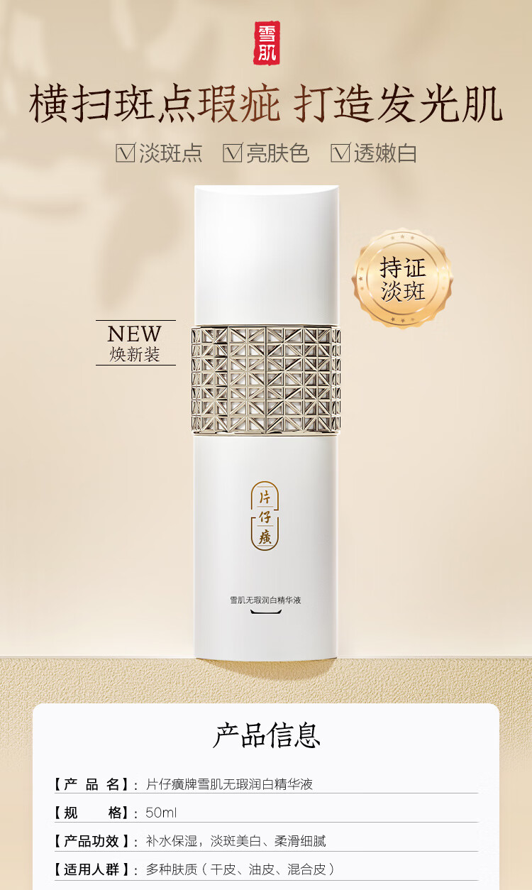 (超运·禾贸)片仔癀牌雪肌无瑕润白精华液50ml 美白滋润擦脸