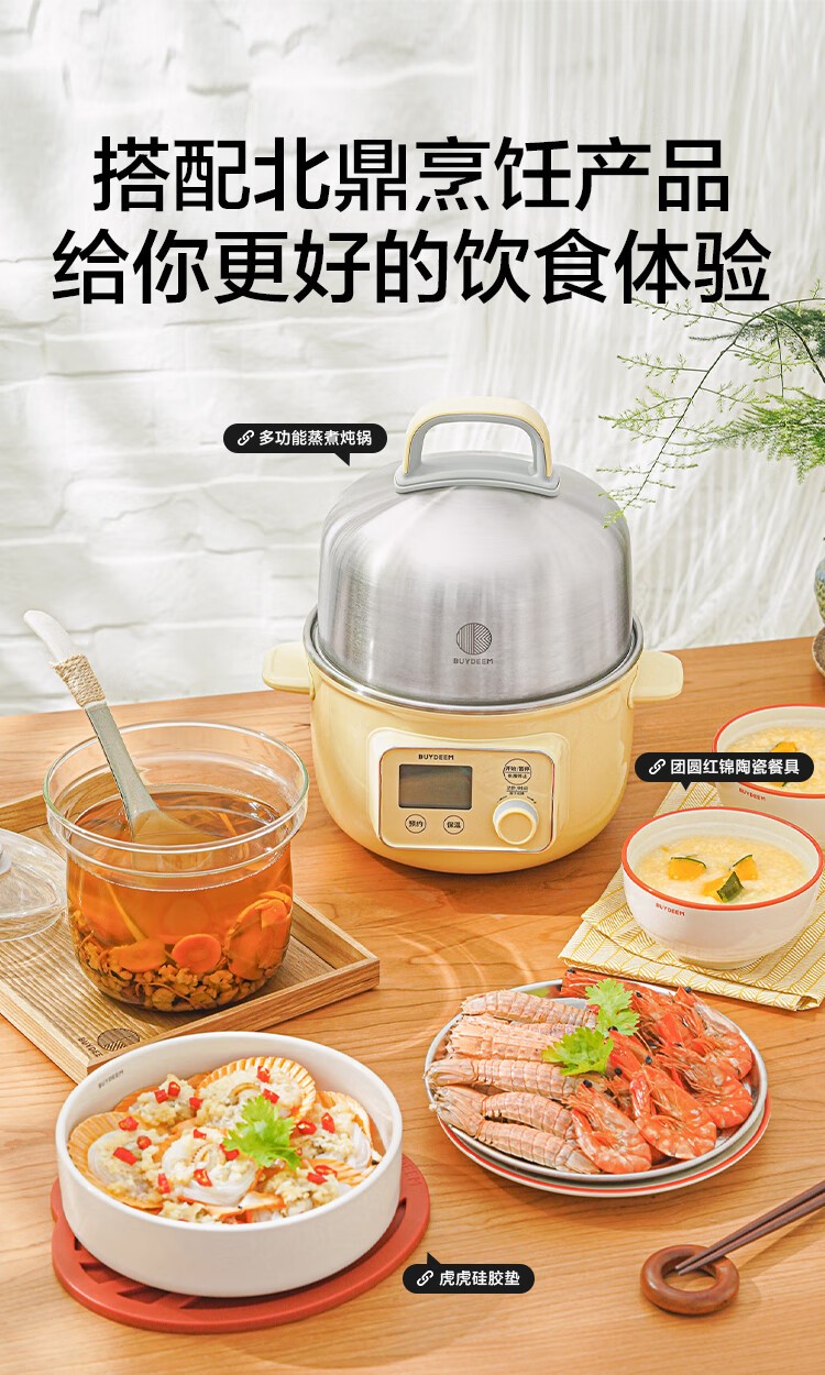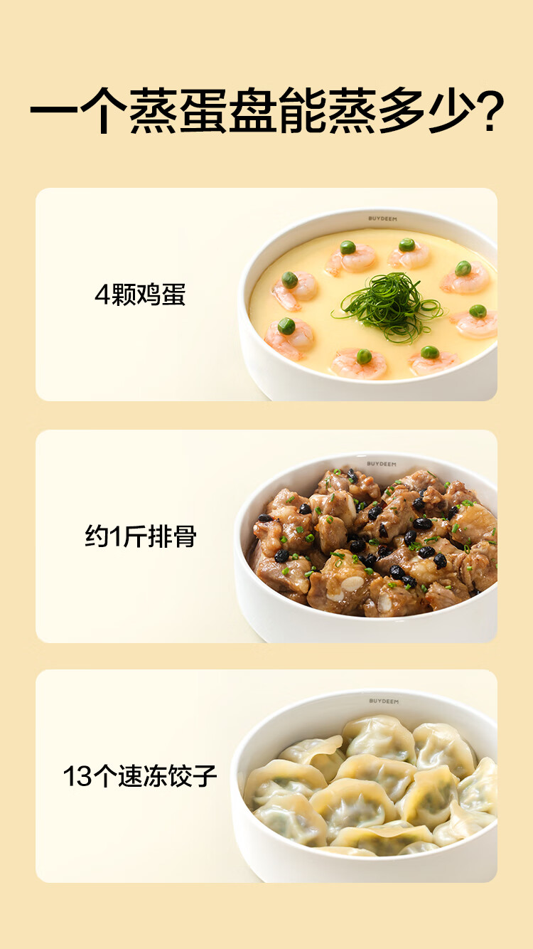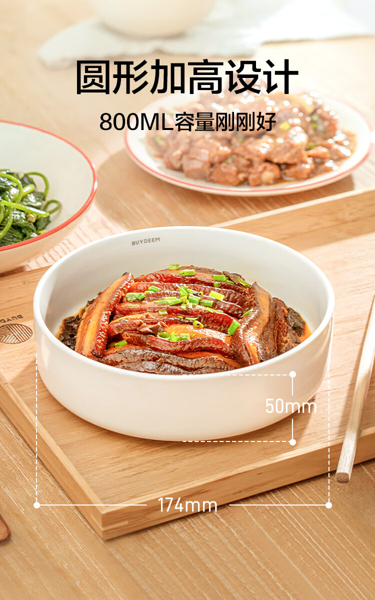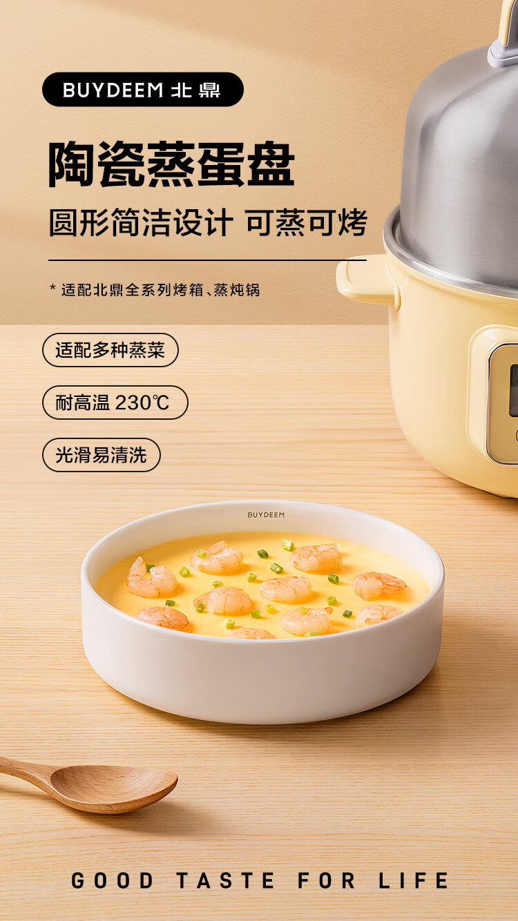 (巨邦佑)R+北鼎(Buydeem) 陶瓷蒸蛋盘 (800ml) 搭配蒸炖锅 中式家用陶瓷盘