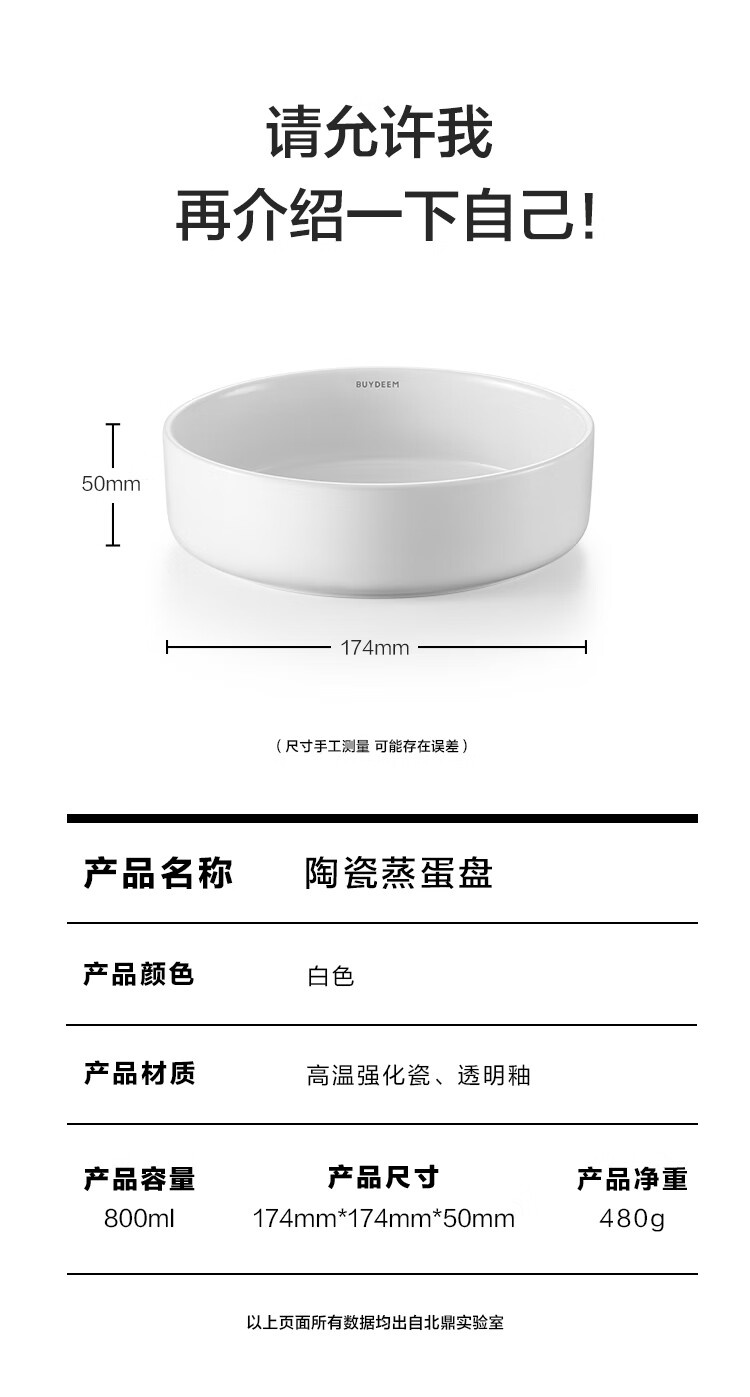 商品名称:(巨邦佑)R+北鼎(Buydeem) 陶瓷蒸蛋盘 (800ml) 搭配蒸炖锅 中式家用陶瓷盘