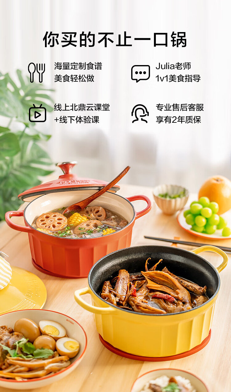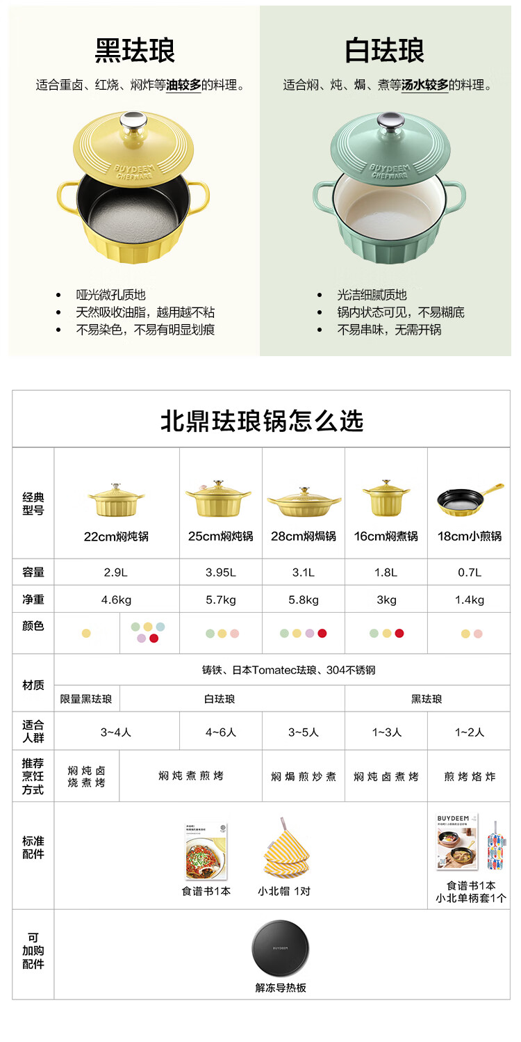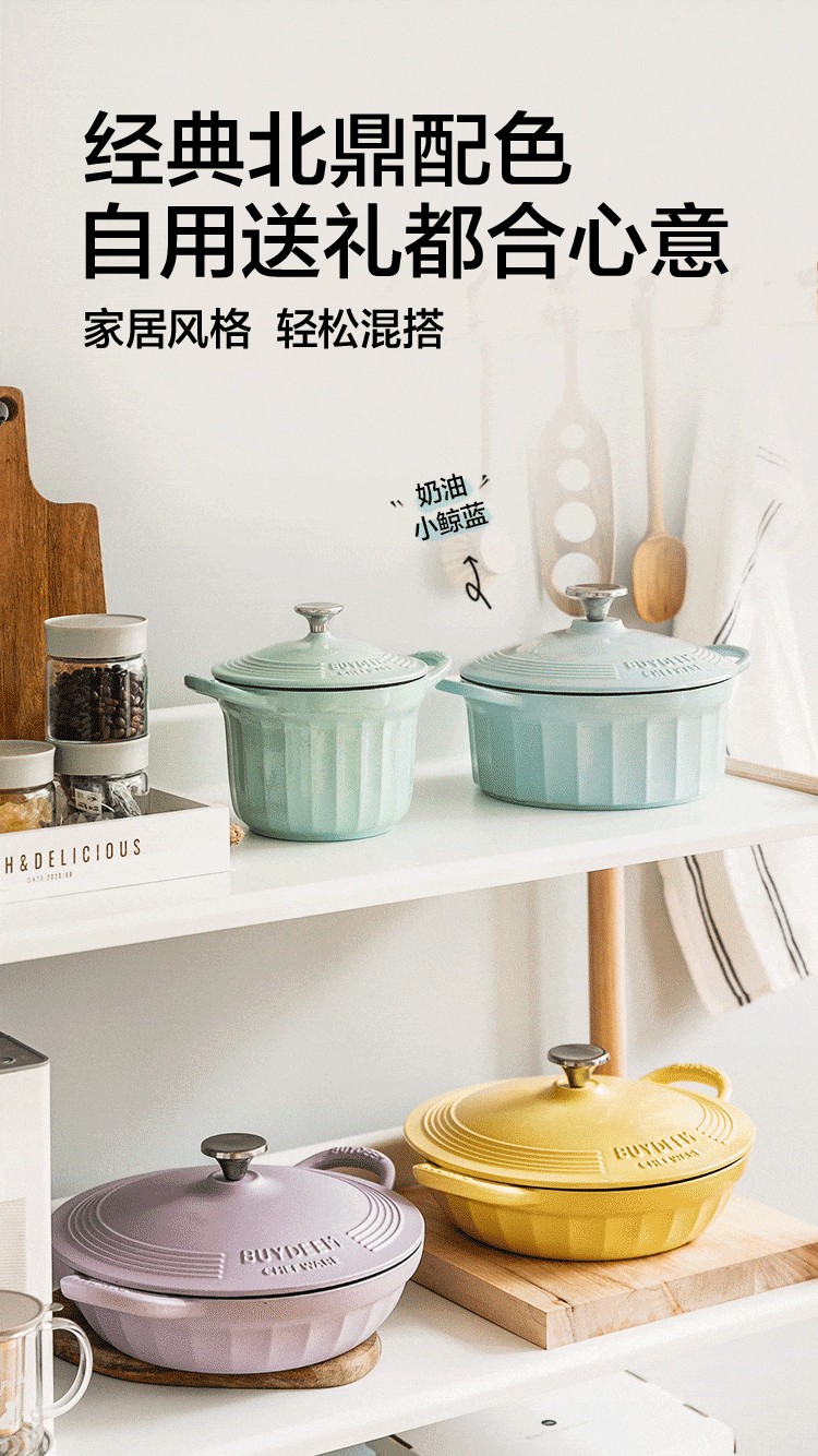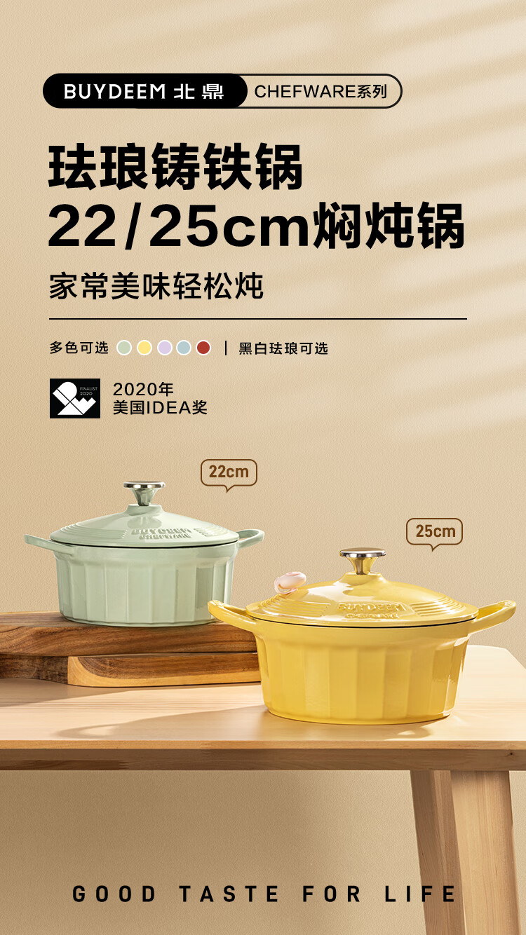(巨邦佑)R+北鼎(Buydeem)珐琅闷炖锅22cm铸铁锅煲汤电磁炉燃气灶通用白珐琅(下单前备注颜色或联系客服)