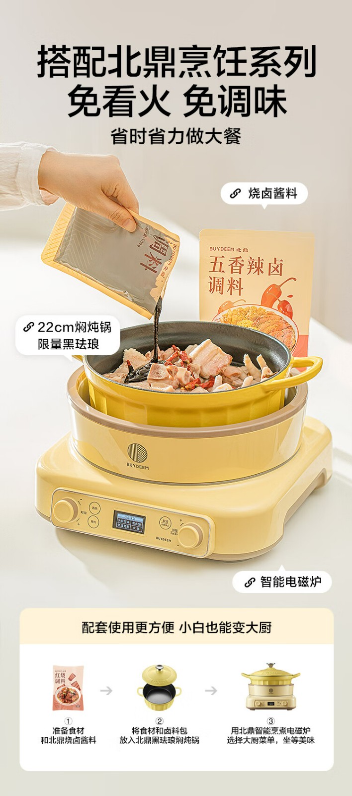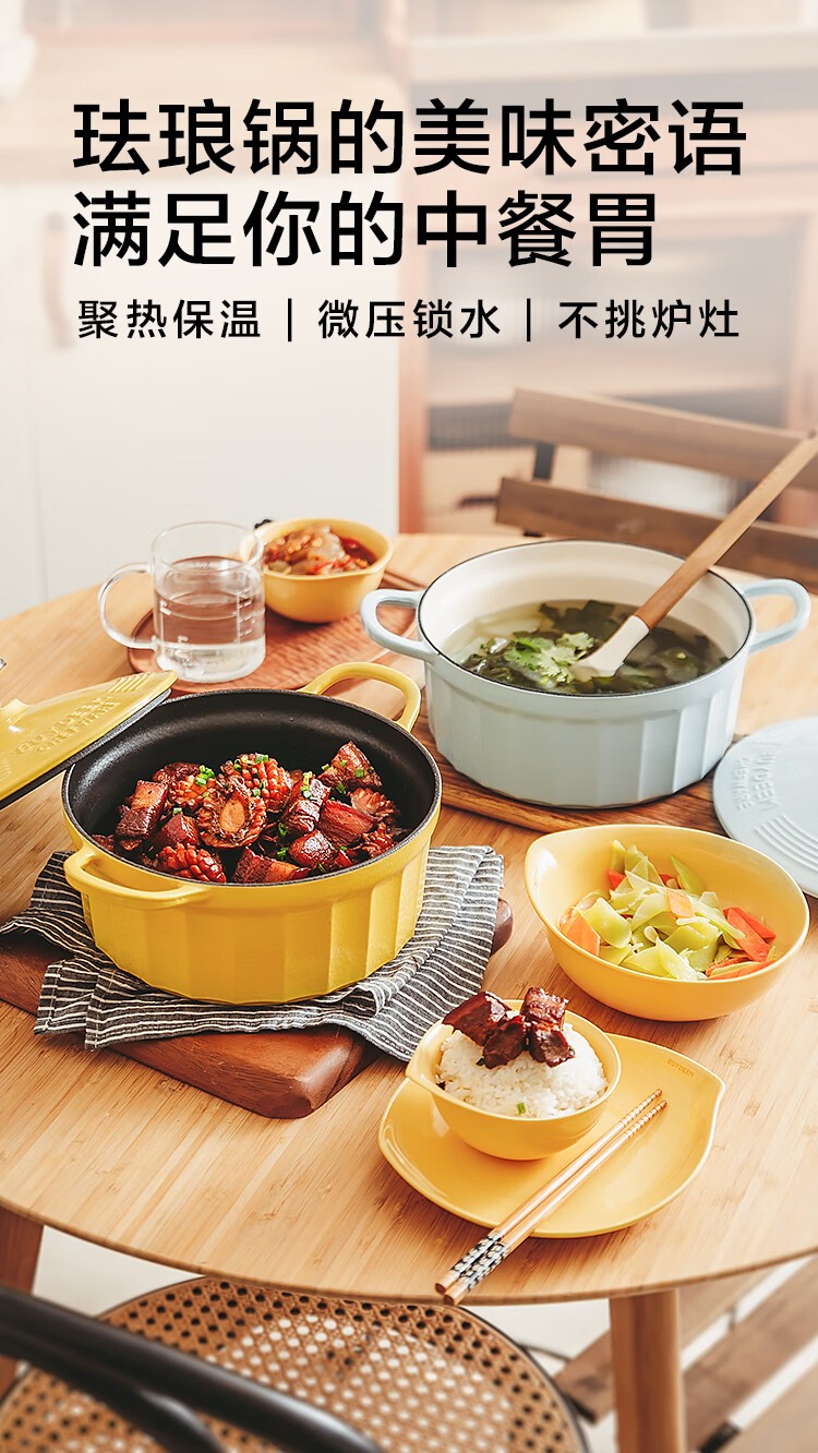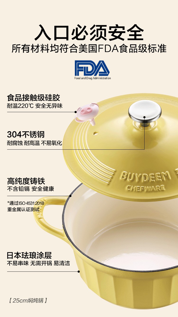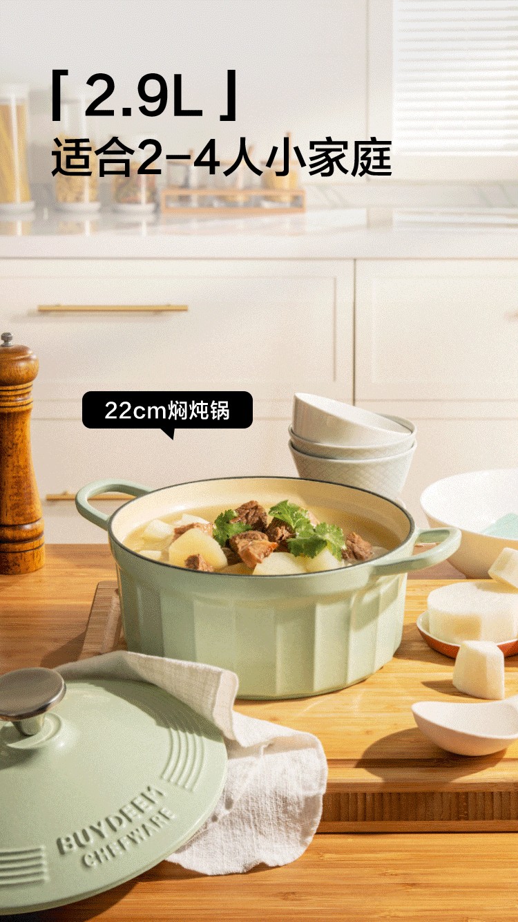 (巨邦佑)R+北鼎(Buydeem)珐琅闷炖锅22cm铸铁锅煲汤电磁炉燃气灶通用白珐琅(下单前备注颜色或联系客服)