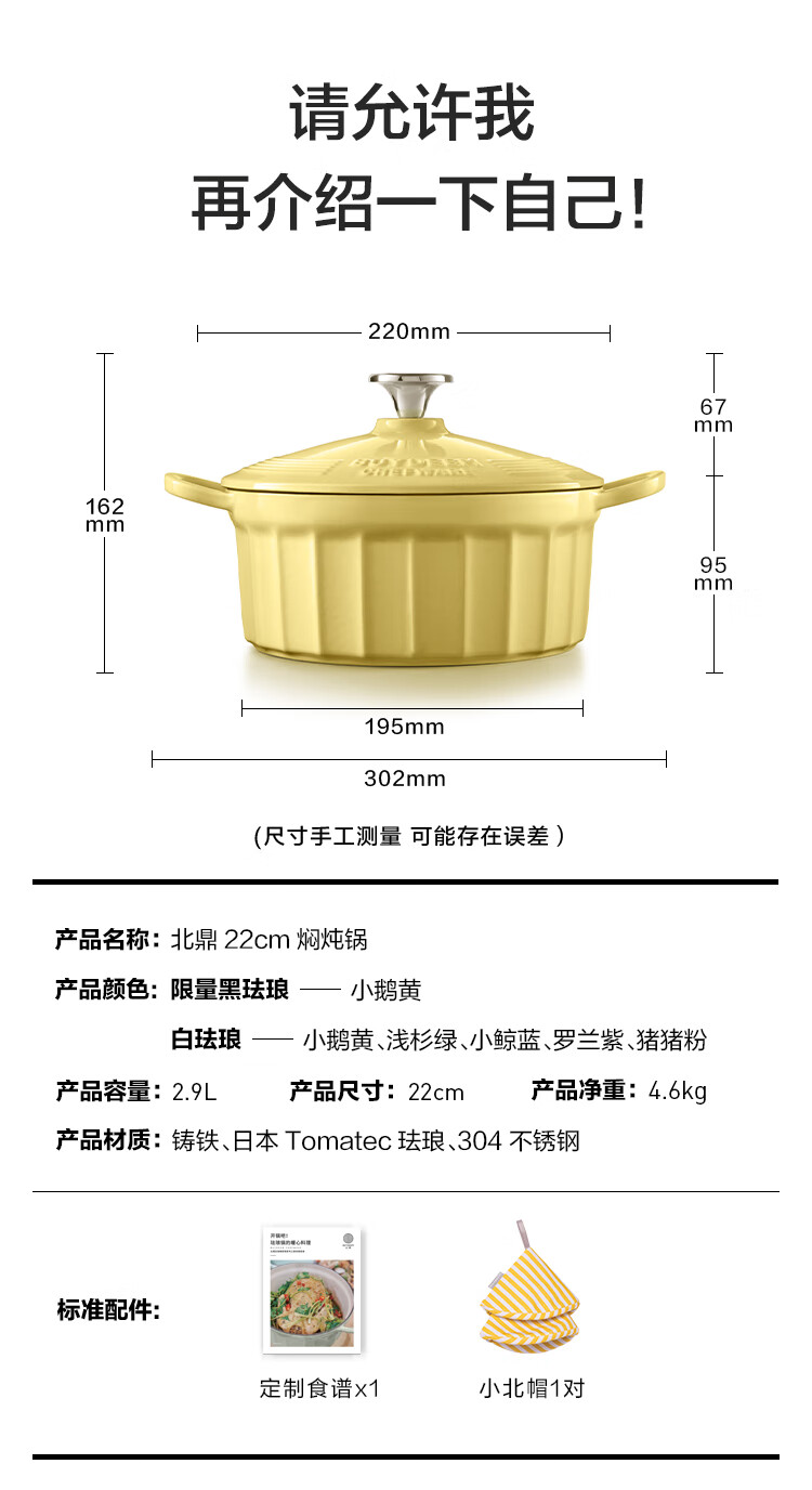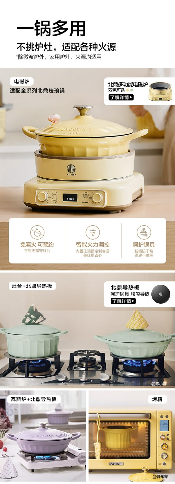 商品名称:(巨邦佑)R+北鼎(Buydeem)珐琅闷炖锅22cm铸铁锅煲汤电磁炉燃气灶通用白珐琅(下单前备注颜色或联系客服)