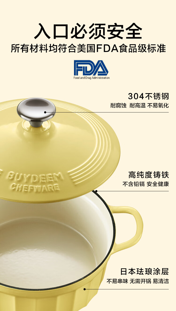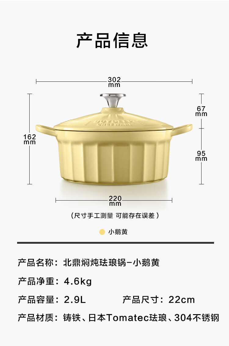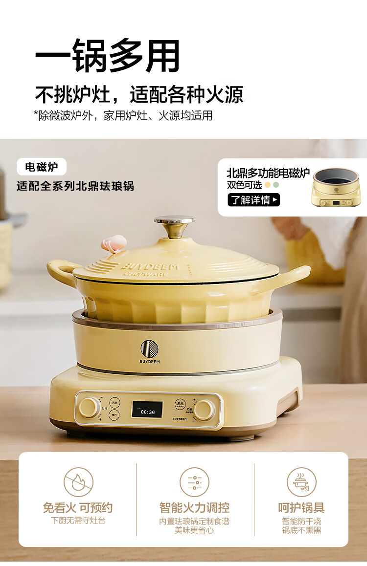 商品名称:(巨邦佑)R+北鼎(Buydeem)珐琅焖炖锅25cm 搪瓷铸铁锅 家用焖炖烤煎煮烹饪锅 一锅多用 白珐琅(下单前备注颜色或联系客服)
