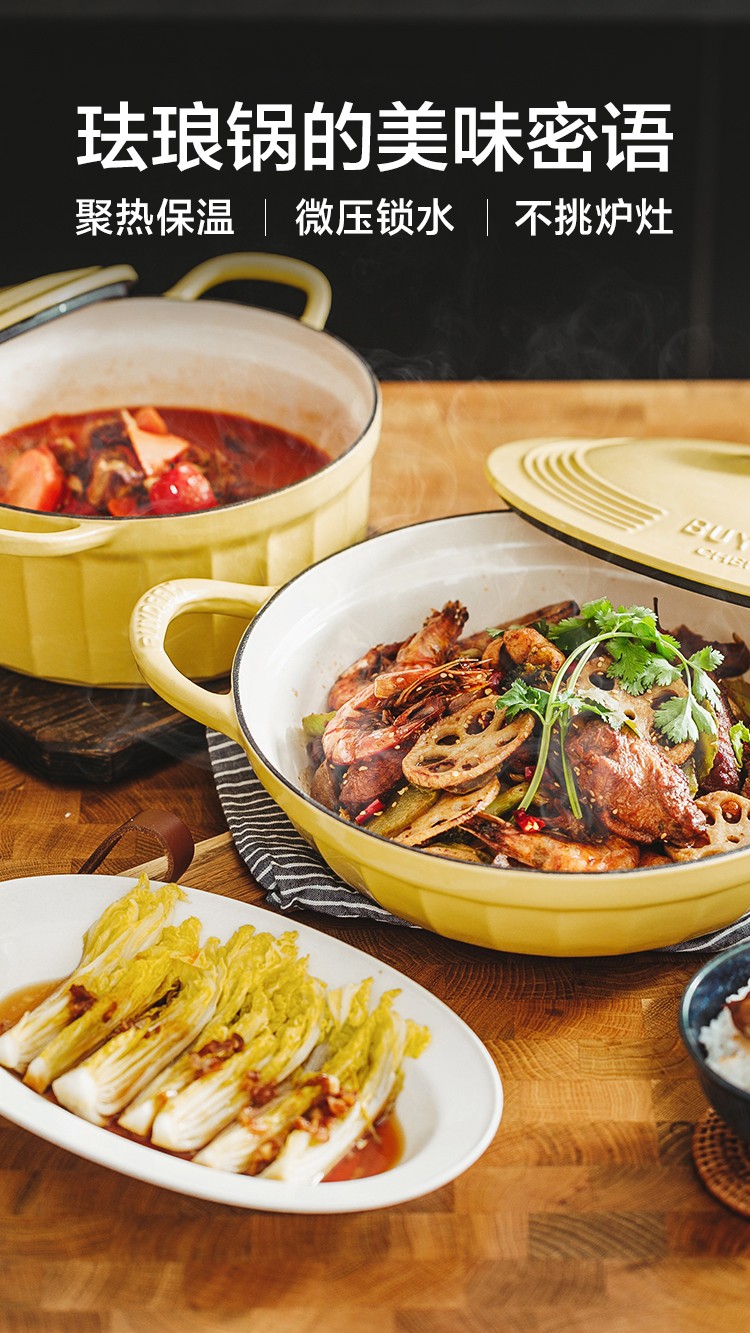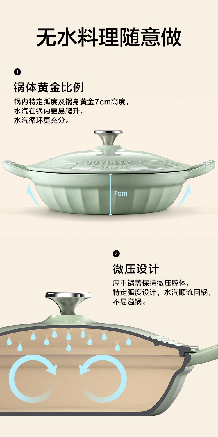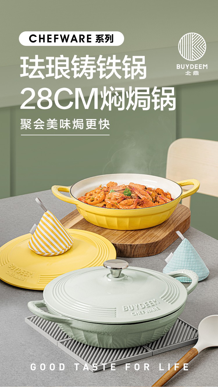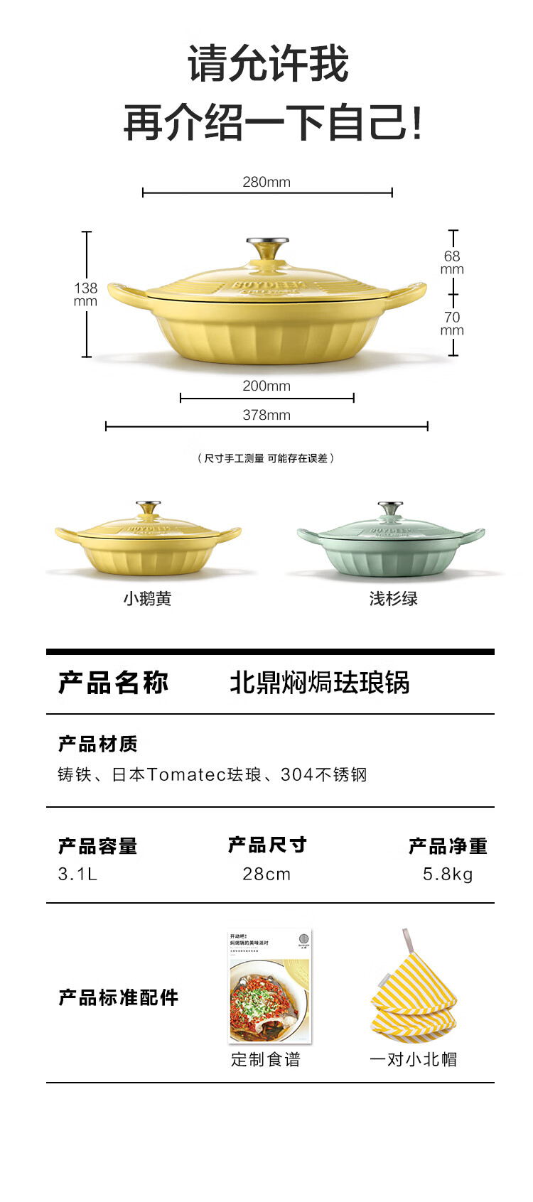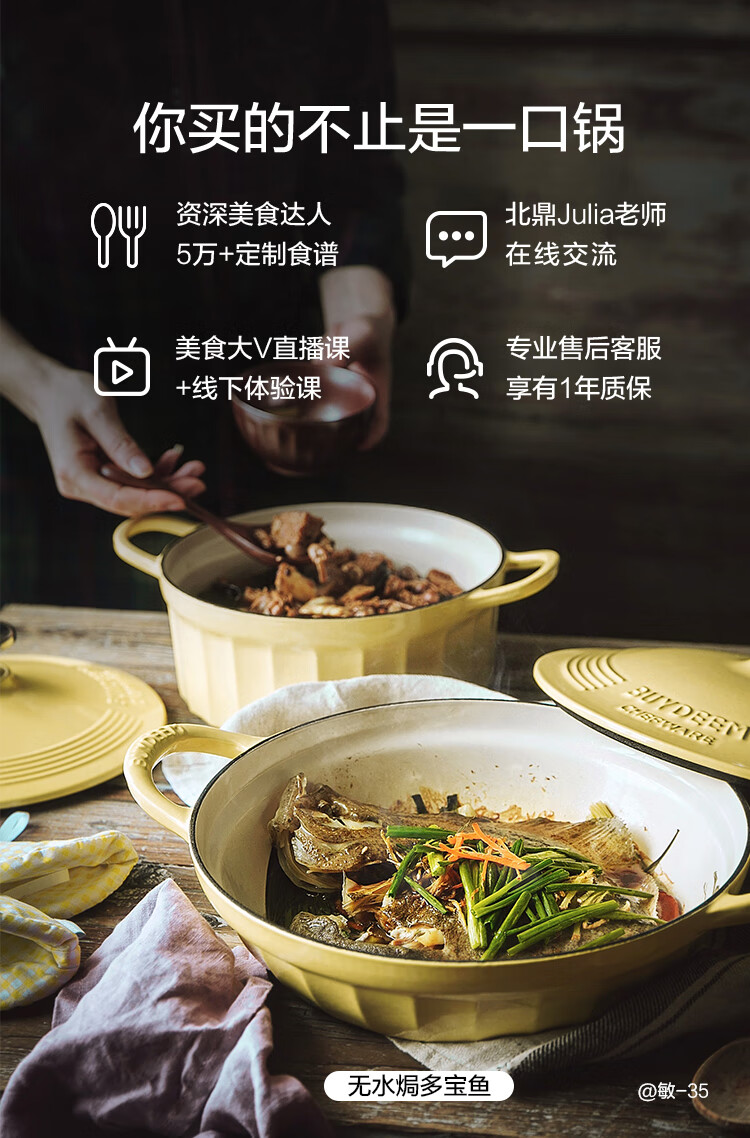 商品名称:(巨邦佑)R+北鼎(Buydeem)珐琅焖焗 锅28cm家用煲汤 平底双耳炖煮锅 电磁炉焖烧搪瓷锅 白珐琅(下单前备注颜色或联系客服)