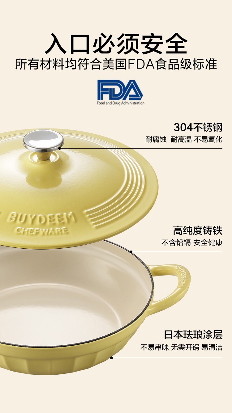(巨邦佑)R+北鼎(Buydeem)珐琅焖焗 锅28cm家用煲汤 平底双耳炖煮锅 电磁炉焖烧搪瓷锅 白珐琅(下单前备注颜色或联系客服)