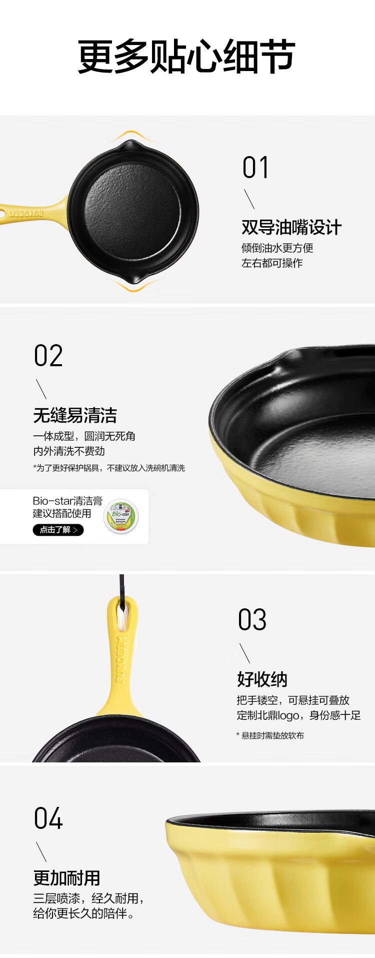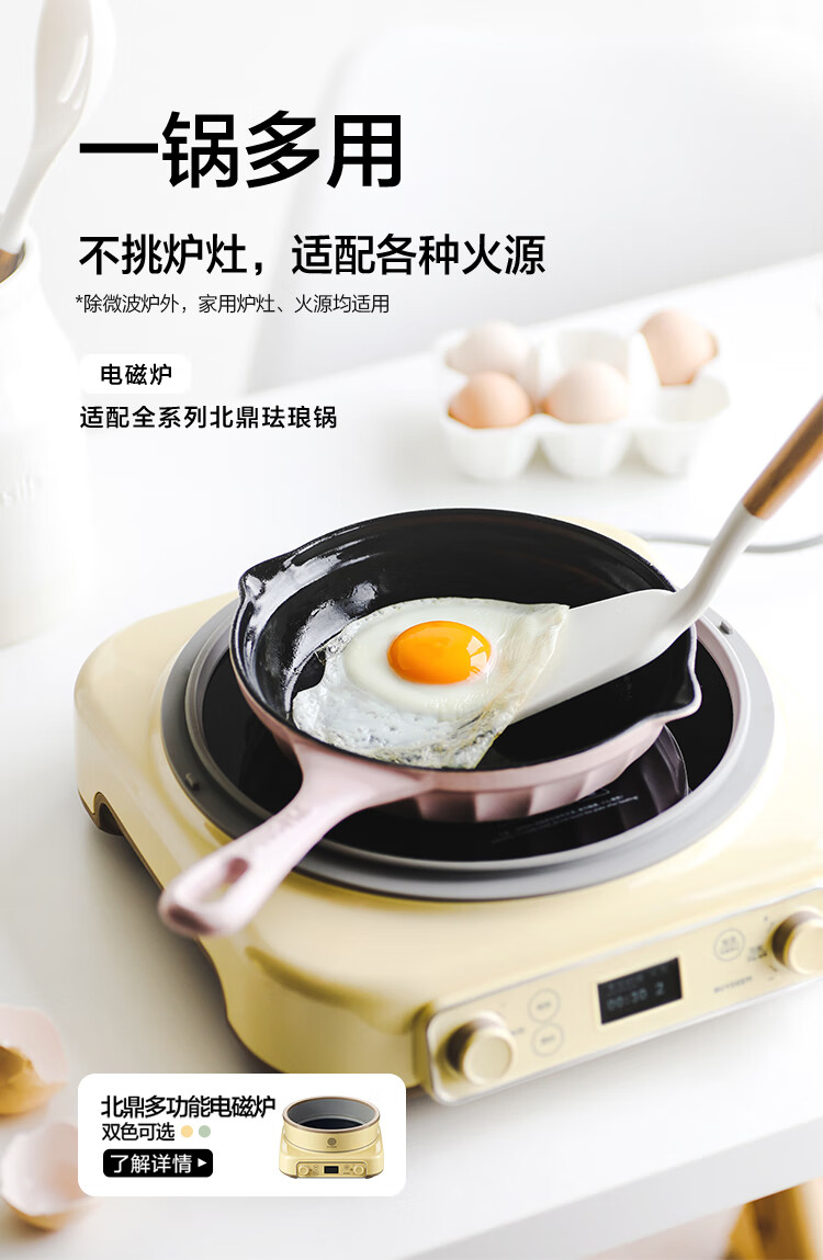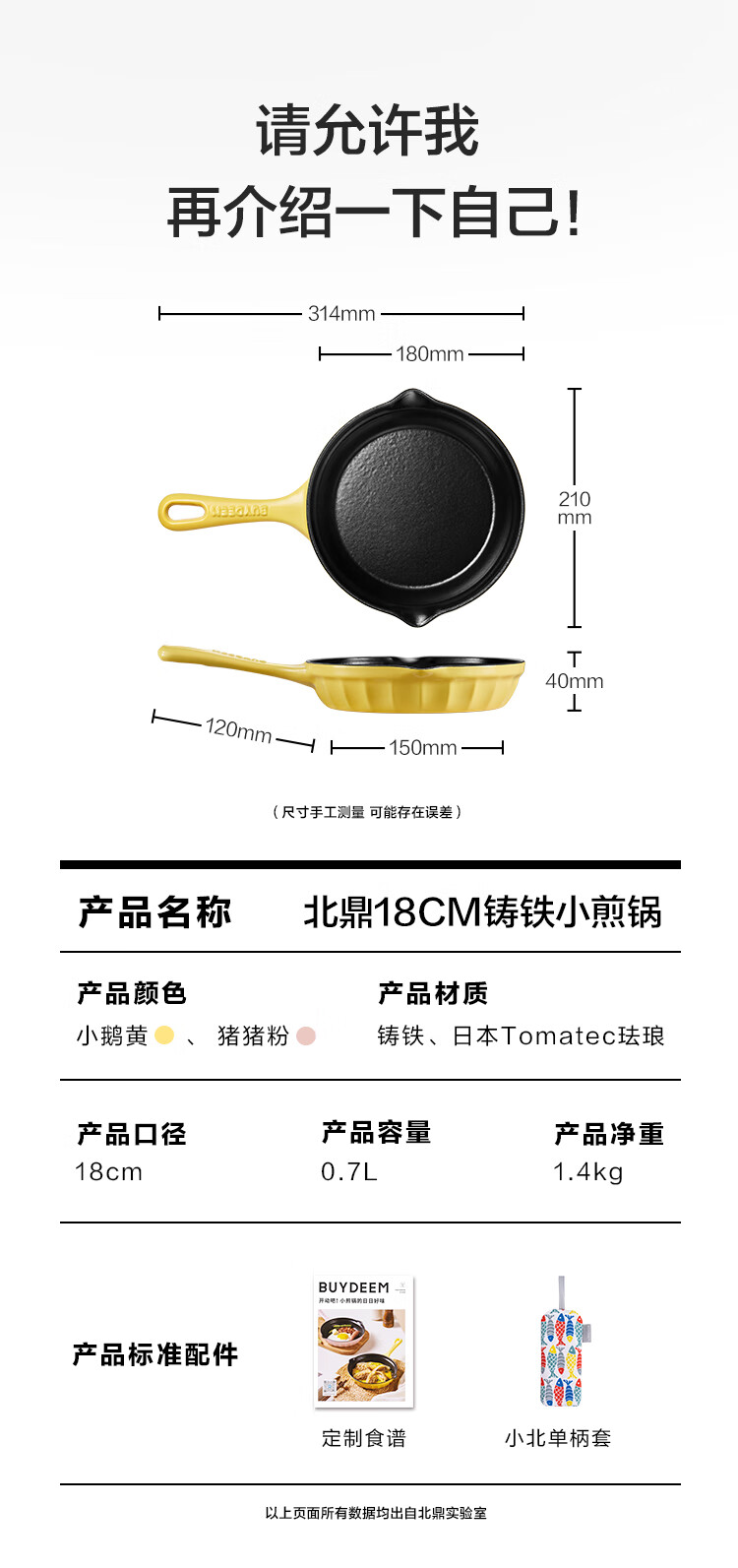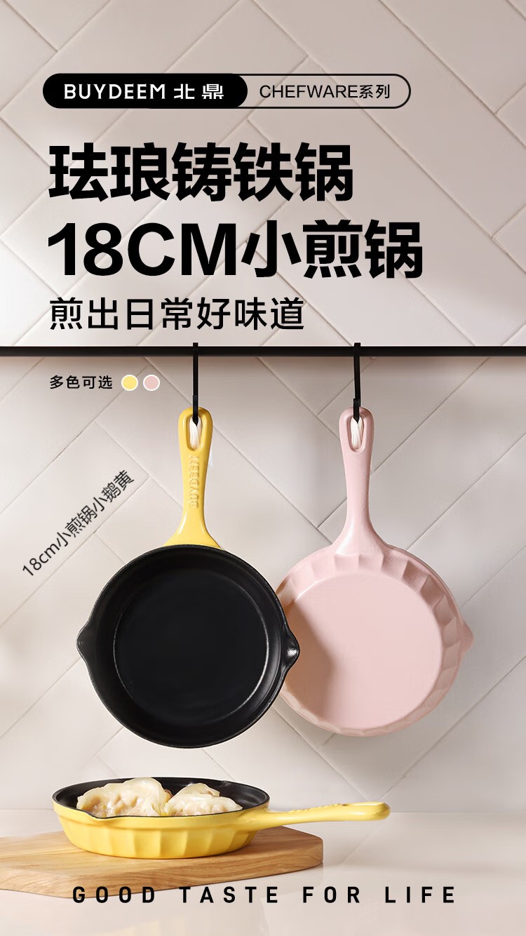 商品名称:(巨邦佑)R+北鼎(Buydeem)迷你小煎锅18cm平底锅铸铁锅燃气通用早餐小炒锅 (下单前备注颜色或联系客服)