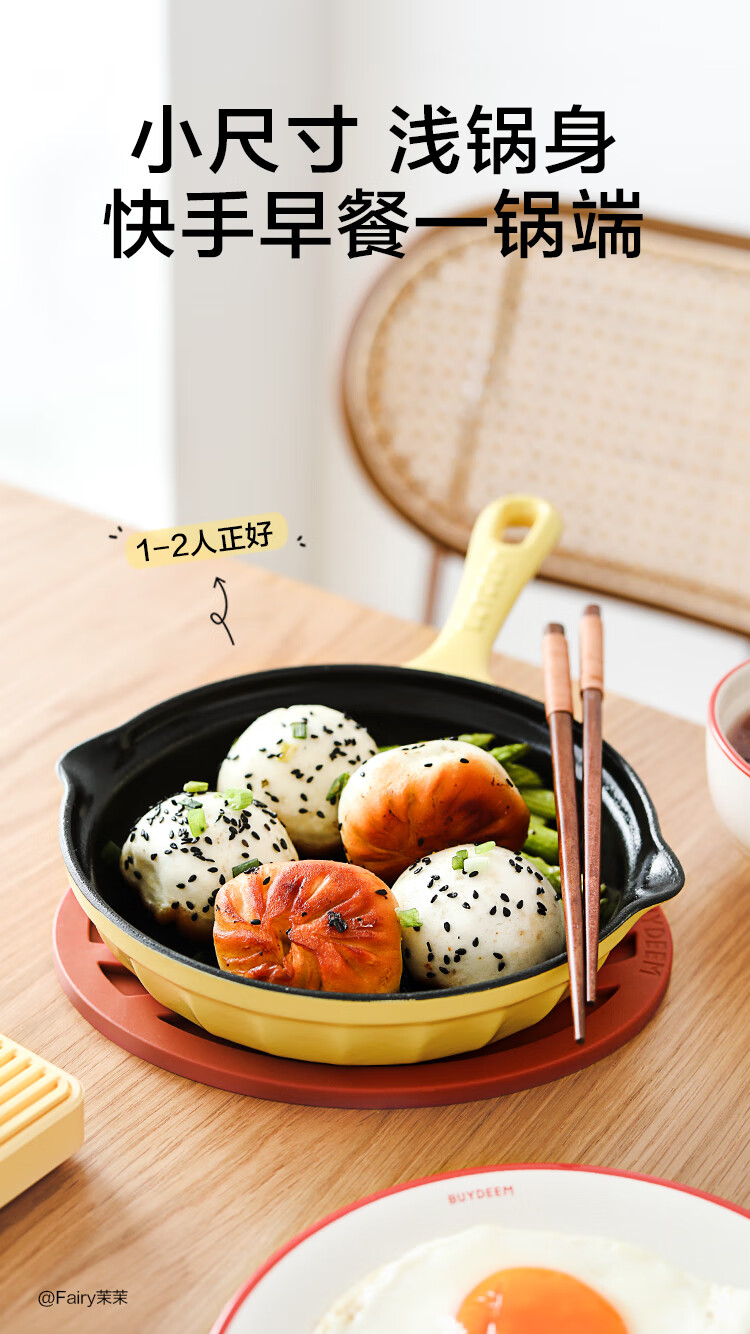 (巨邦佑)R+北鼎(Buydeem)迷你小煎锅18cm平底锅铸铁锅燃气通用早餐小炒锅 (下单前备注颜色或联系客服)
