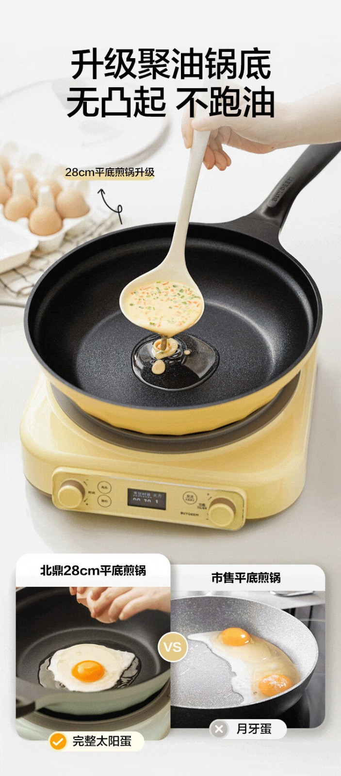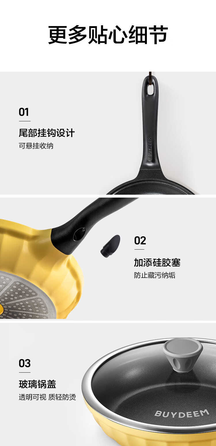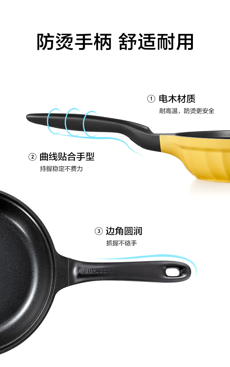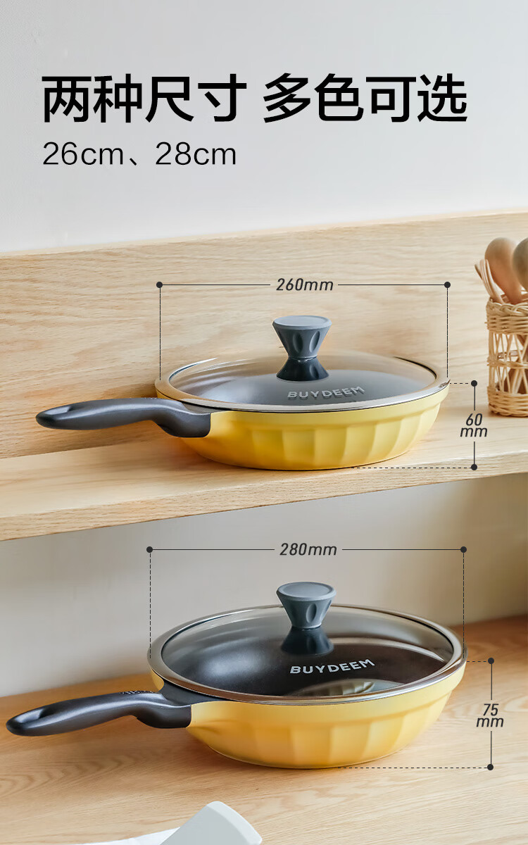 (巨邦佑)R+北鼎(Buydeem)不粘平底锅26cm 煎锅牛排烤肉煎饼煎鸡蛋 电磁炉燃气卡式炉炒菜锅 (下单前备注颜色或联系客服)
