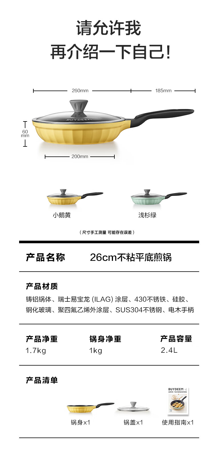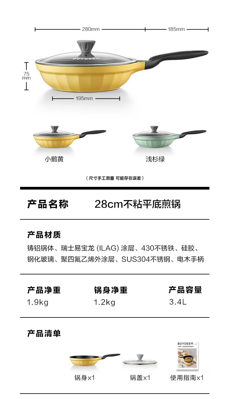 商品名称:(巨邦佑)R+北鼎(Buydeem)不粘平底锅26cm 煎锅牛排烤肉煎饼煎鸡蛋 电磁炉燃气卡式炉炒菜锅 (下单前备注颜色或联系客服)