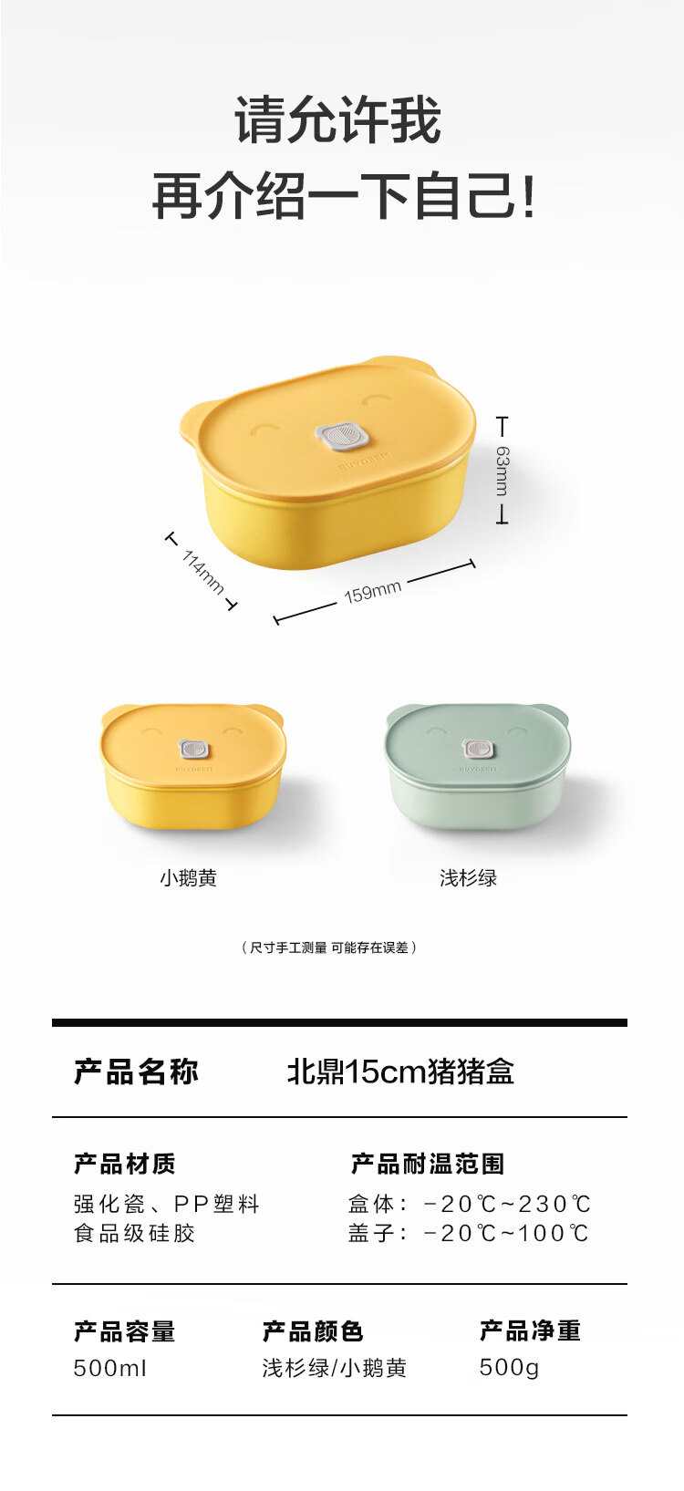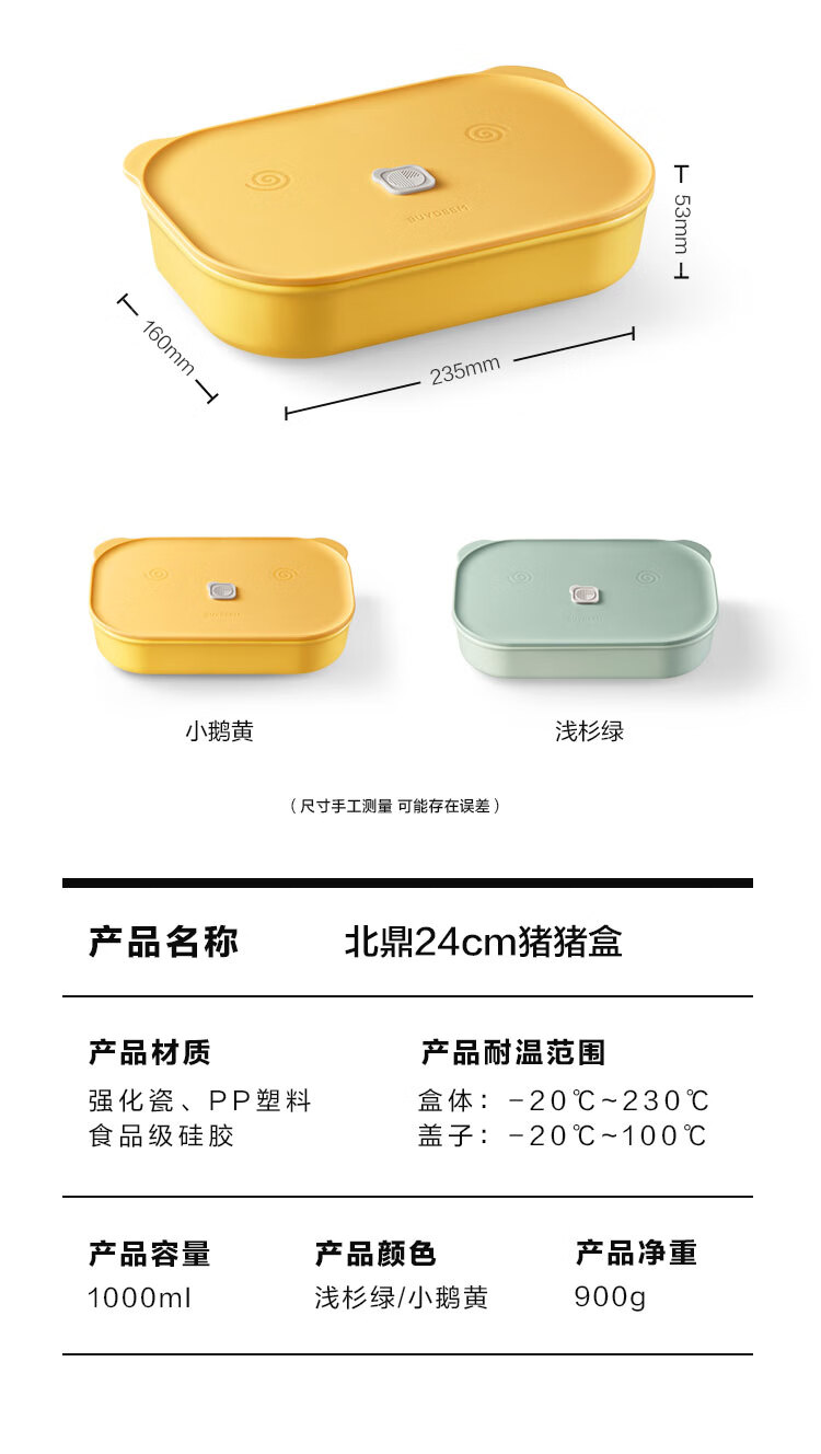 商品名称:(巨邦佑)R+北鼎(Buydeem)猪猪盒24cm 1000ml陶瓷蒸碗饭盒便携便当盒蒸盒上班族学生餐盒微波炉烤箱通用 (下单前备注颜色或联系客服)