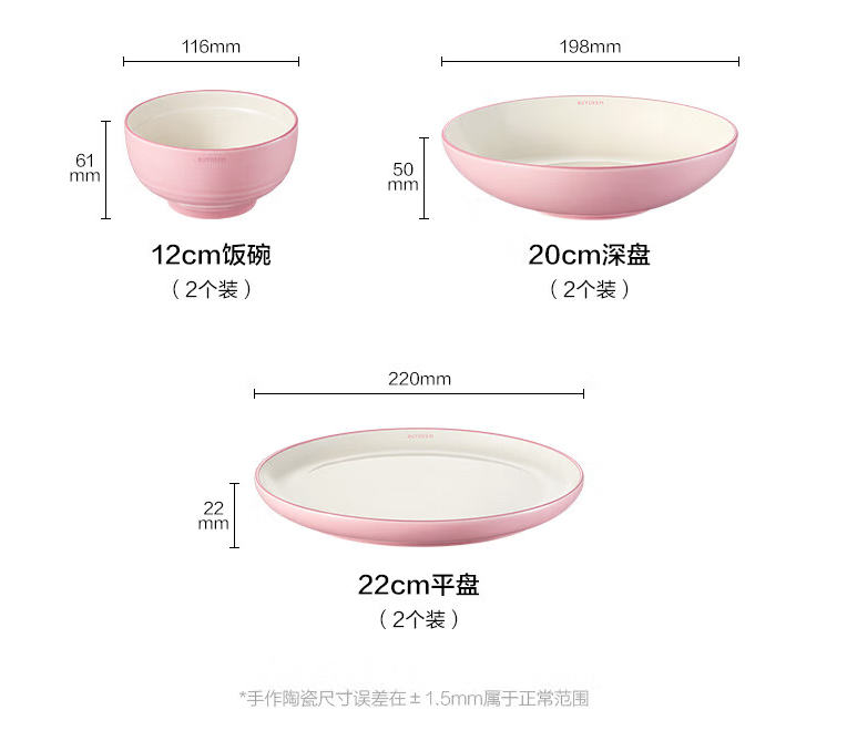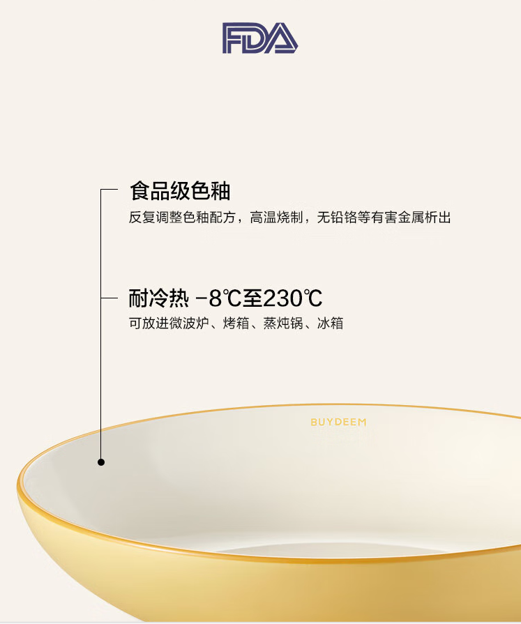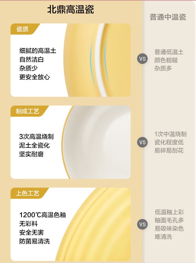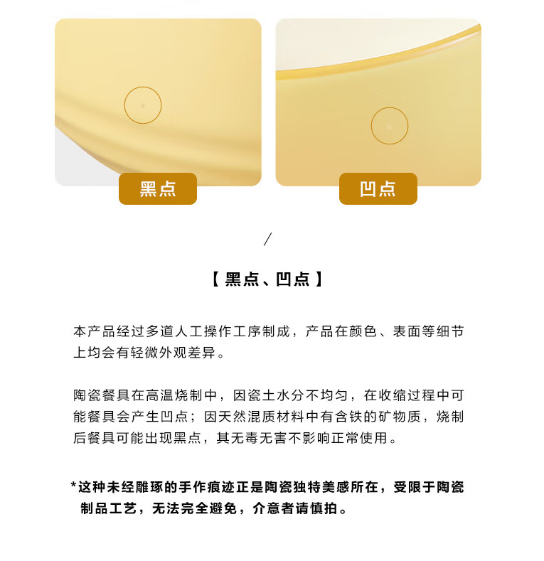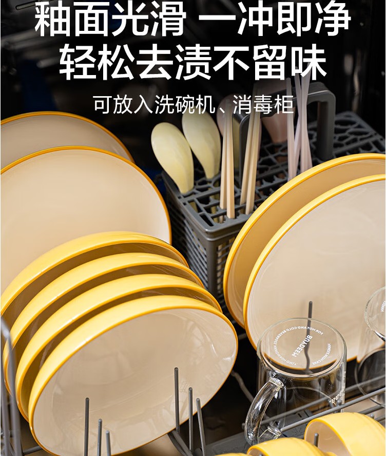 商品名称:(巨邦佑)R+北鼎团圆月黄陶瓷餐具(6件)12cm碗*2&20cm深盘*2&22cm平盘*2