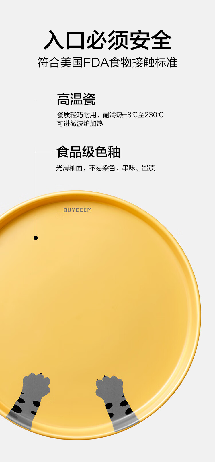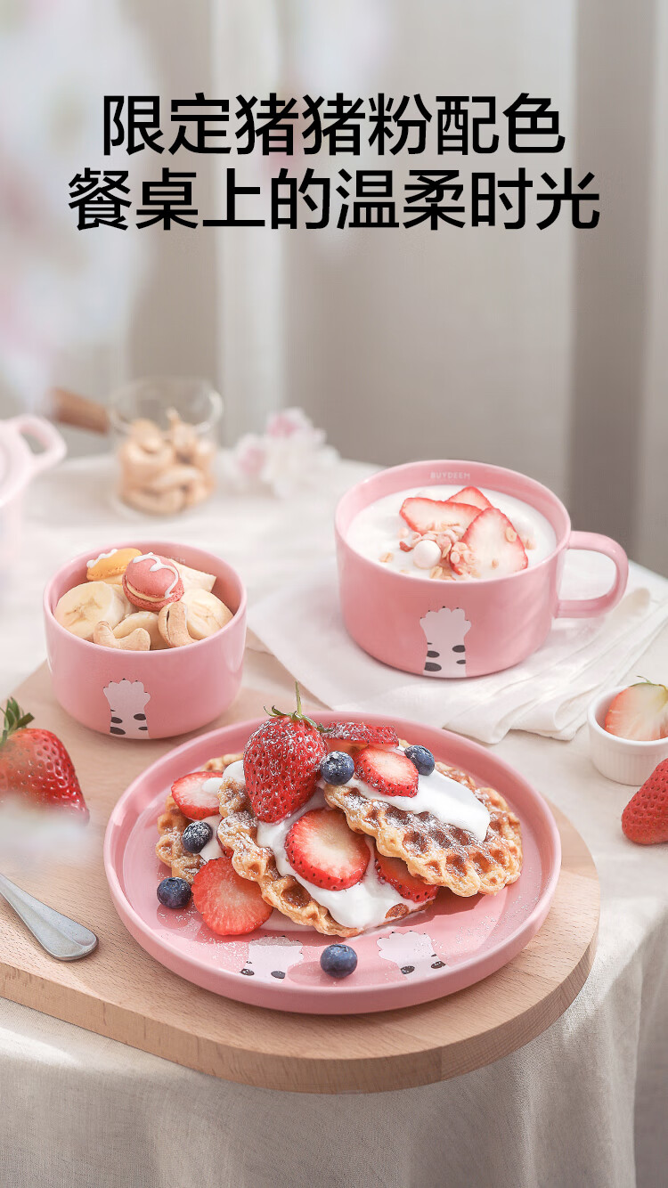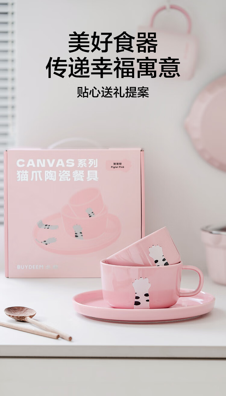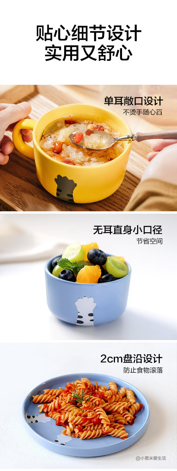 商品名称:(巨邦佑)R+北鼎猫爪餐具套装(3头)陶瓷碗盘马克杯整套早餐送礼 (下单前备注颜色或联系客服)
