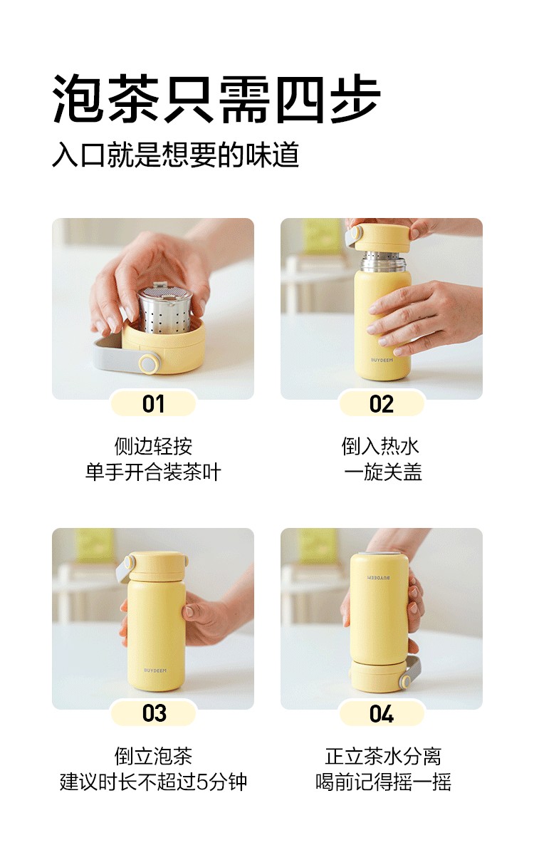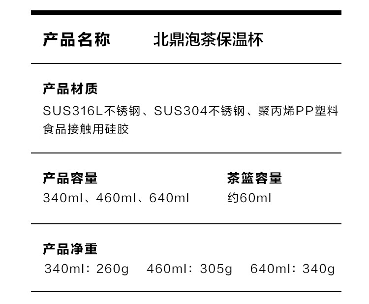 商品名称:(巨邦佑)R+北鼎(Buydeem)泡茶保温杯 茶水分离杯大容量实用水杯家用高颜值泡茶杯节日送礼 340ml(下单前备注颜色或联系客服)