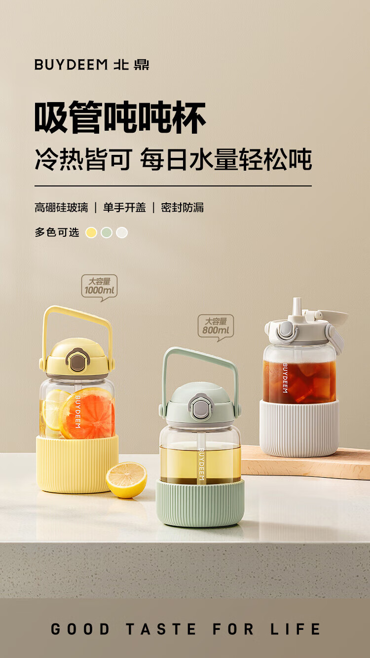 商品名称:(巨邦佑)R+北鼎(Buydeem)吨吨杯800ml 高颜值大容量带吸管提手防烫水杯 情侣杯 礼物 (下单前备注颜色或联系客服)