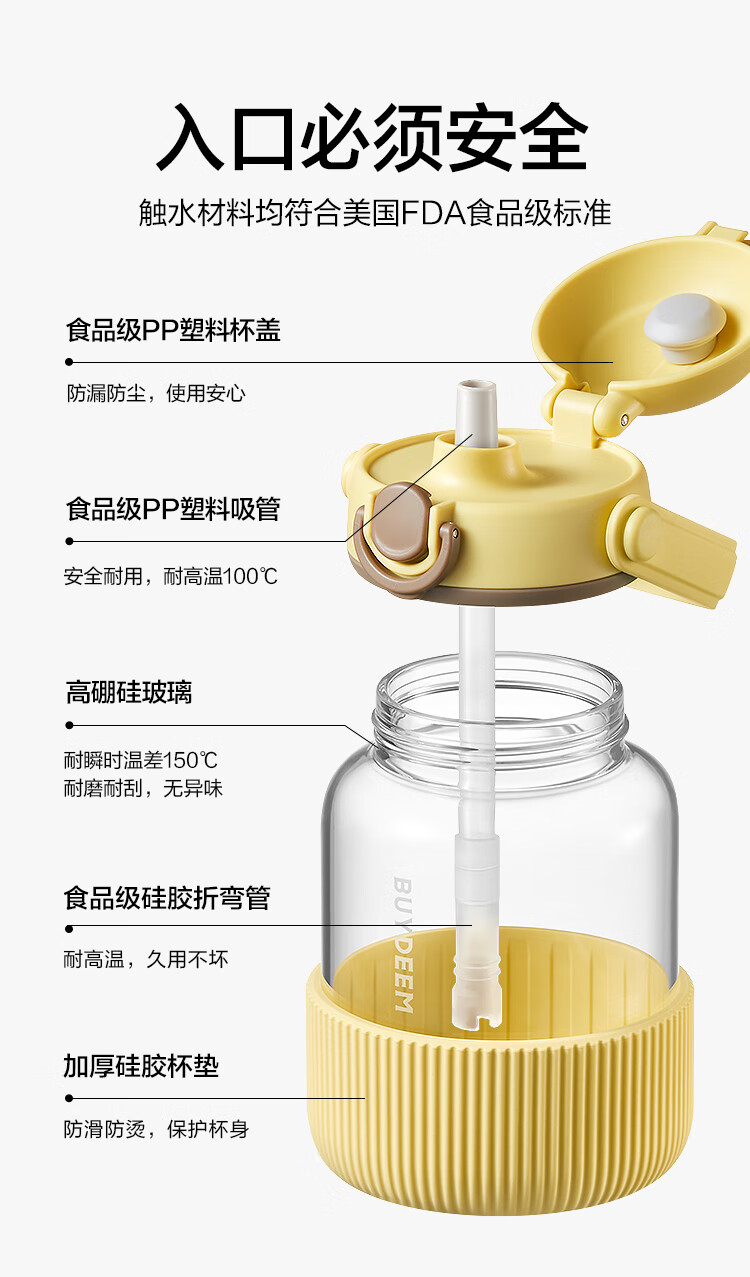 (巨邦佑)R+北鼎(Buydeem)吨吨杯800ml 高颜值大容量带吸管提手防烫水杯 情侣杯 礼物 (下单前备注颜色或联系客服)