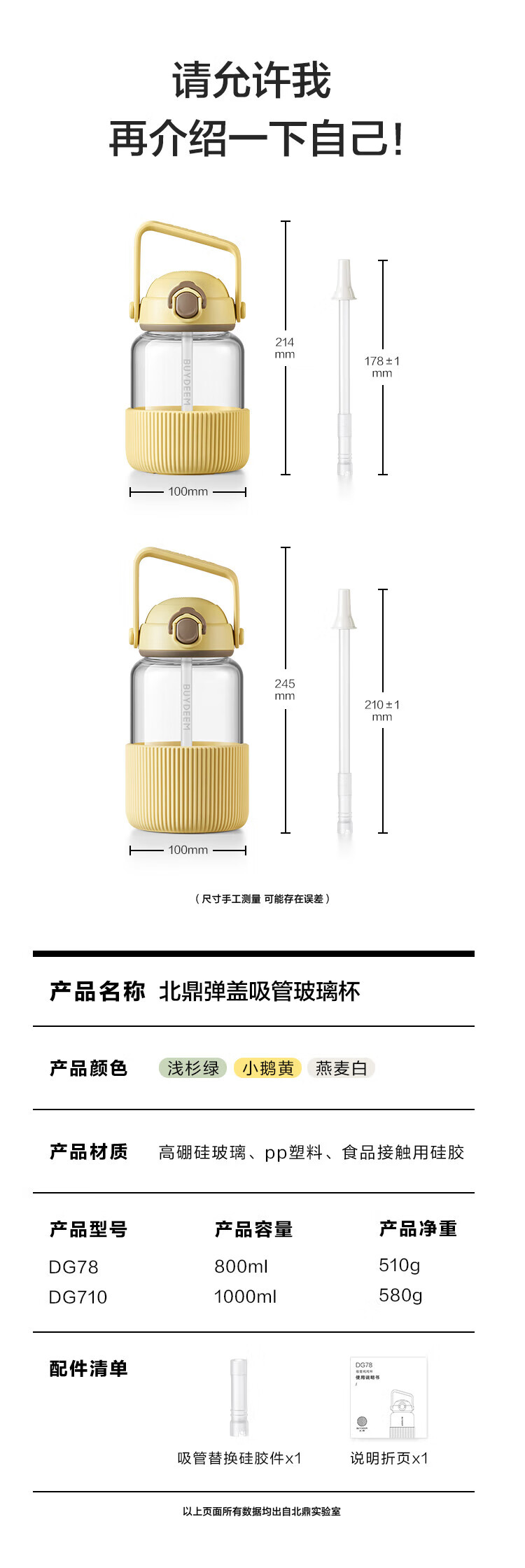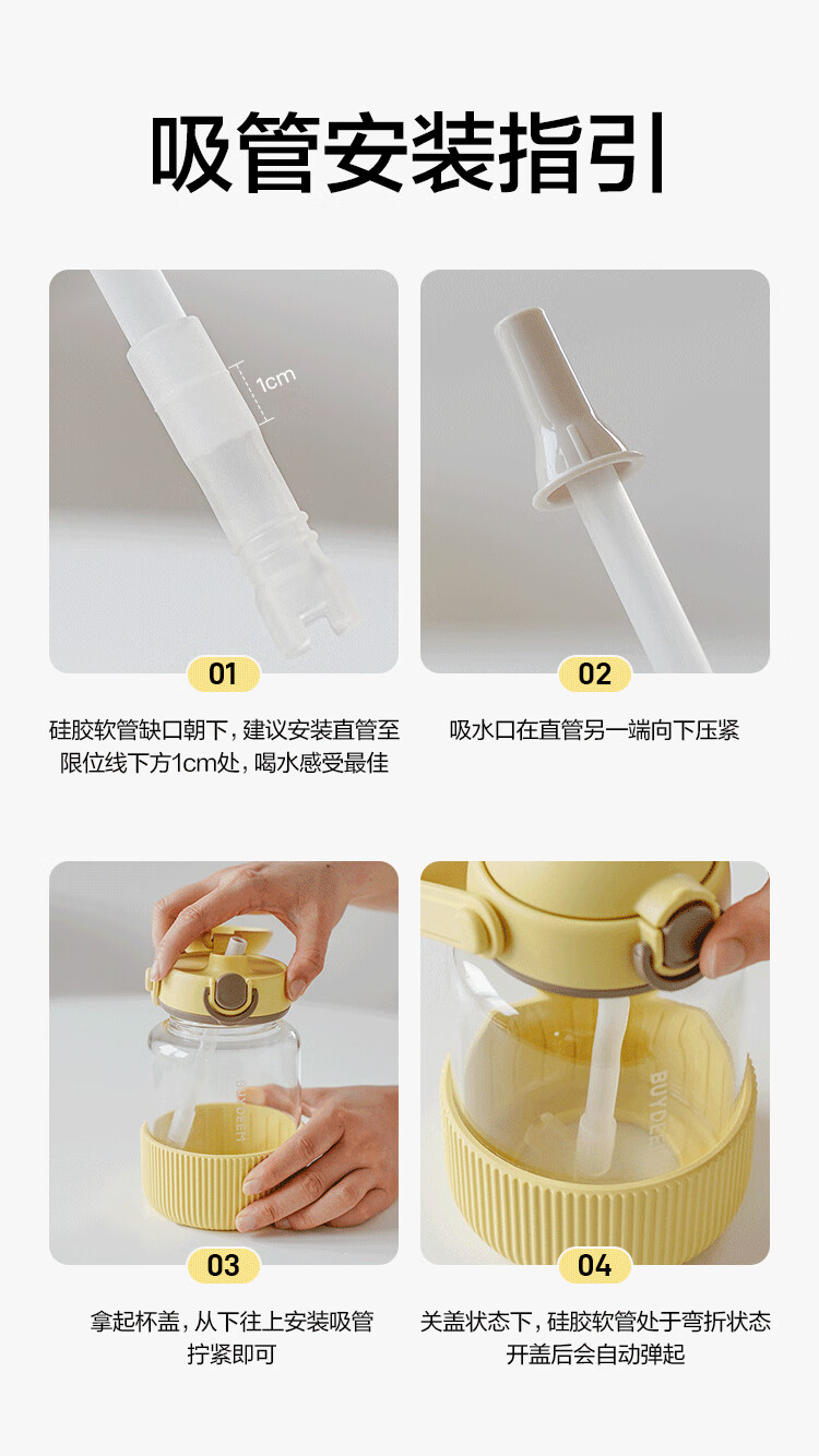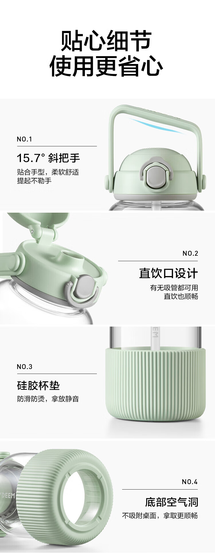 商品名称:(巨邦佑)R+北鼎(Buydeem)吨吨杯1000ml 高颜值大容量带吸管提手防烫水杯 情侣杯 礼物 (下单前备注颜色或联系客服)