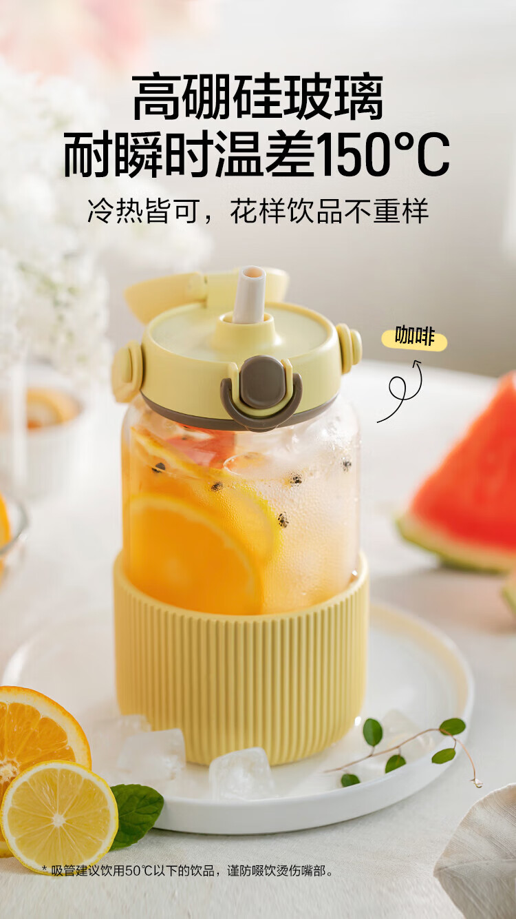 (巨邦佑)R+北鼎(Buydeem)吨吨杯1000ml 高颜值大容量带吸管提手防烫水杯 情侣杯 礼物 (下单前备注颜色或联系客服)