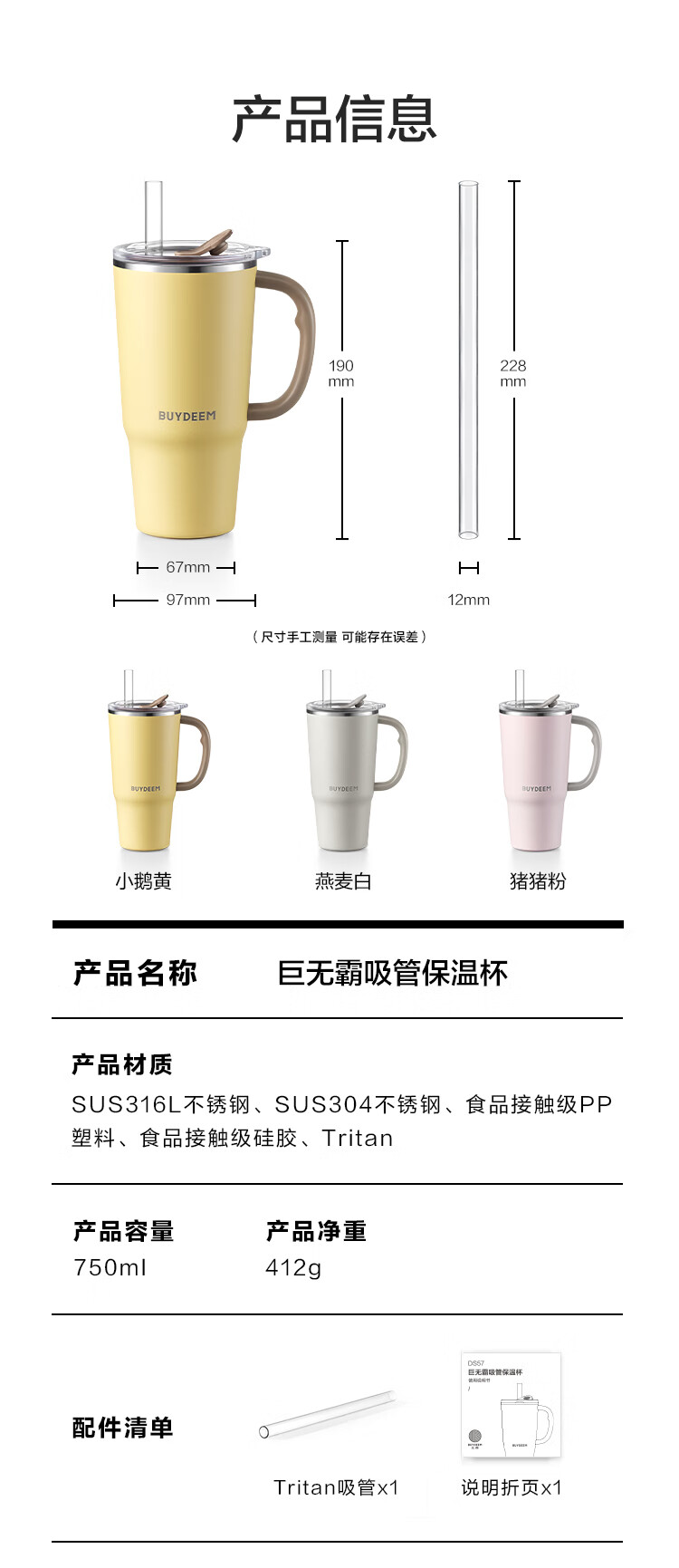 商品名称:(巨邦佑)R+北鼎巨无霸吸管保温杯750ml 大容量水杯316L不锈钢保温保冷冰霸杯网红水杯生日礼物 (下单前备注颜色或联系客服)