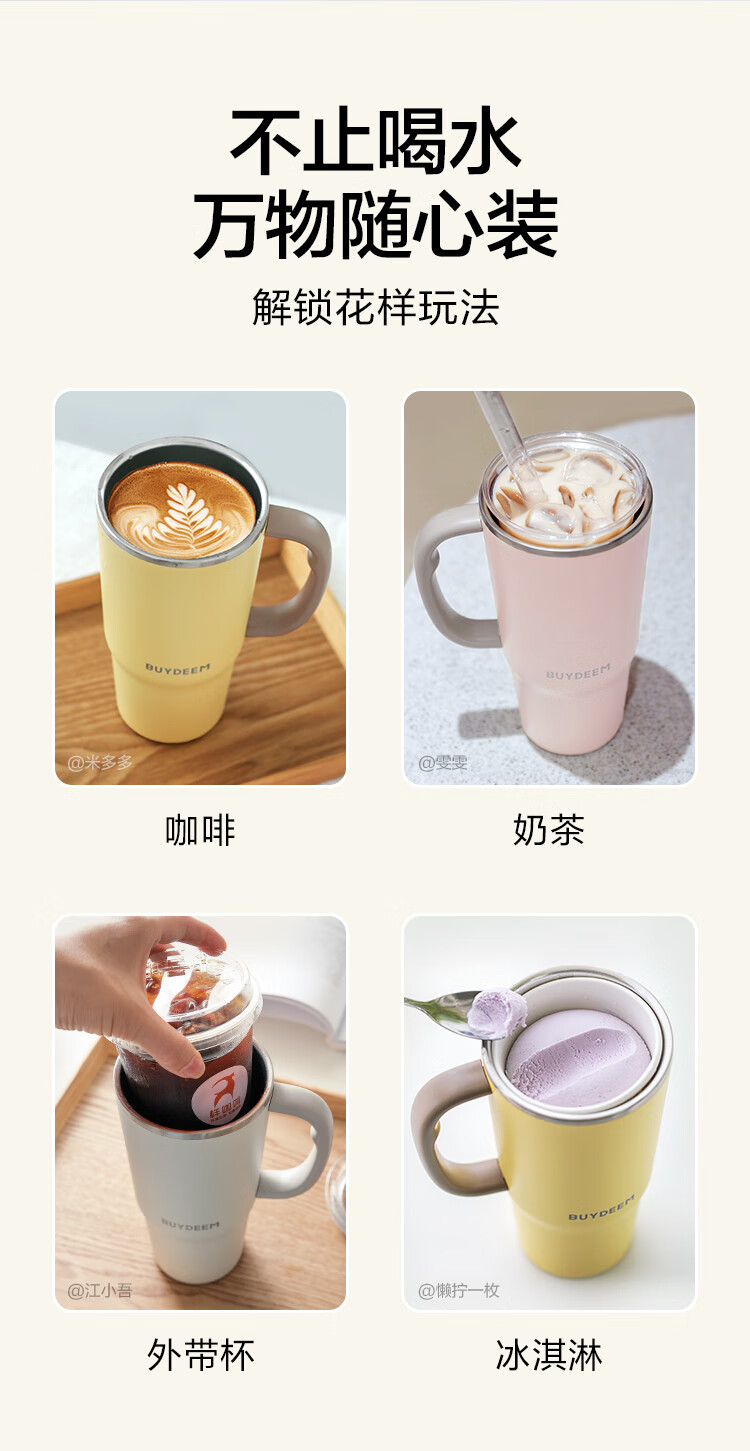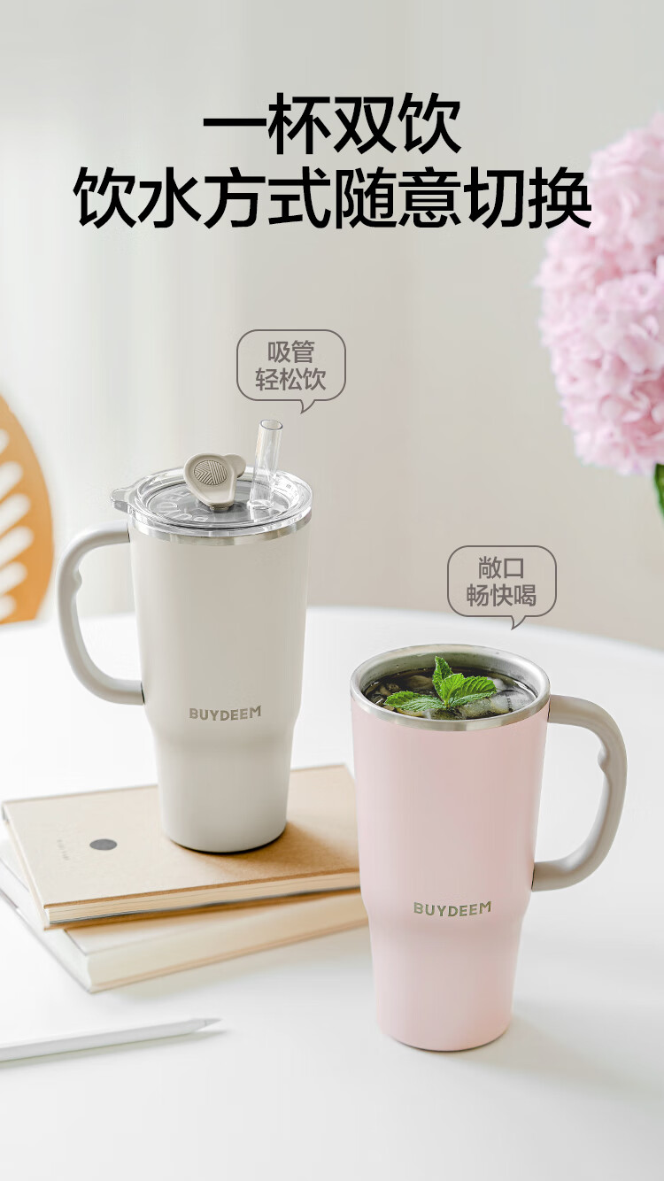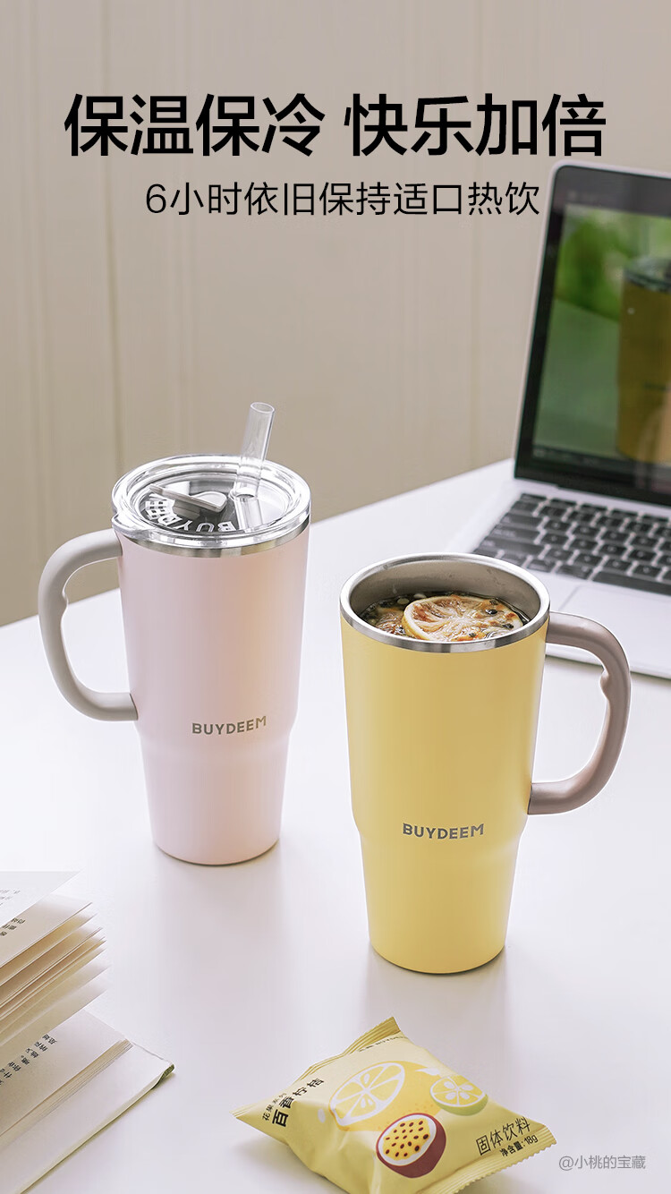 (巨邦佑)R+北鼎(Buydeem)吨吨杯800ml 高颜值大容量带吸管提手防烫水杯 情侣杯 礼物 (下单前备注颜色或联系客服)