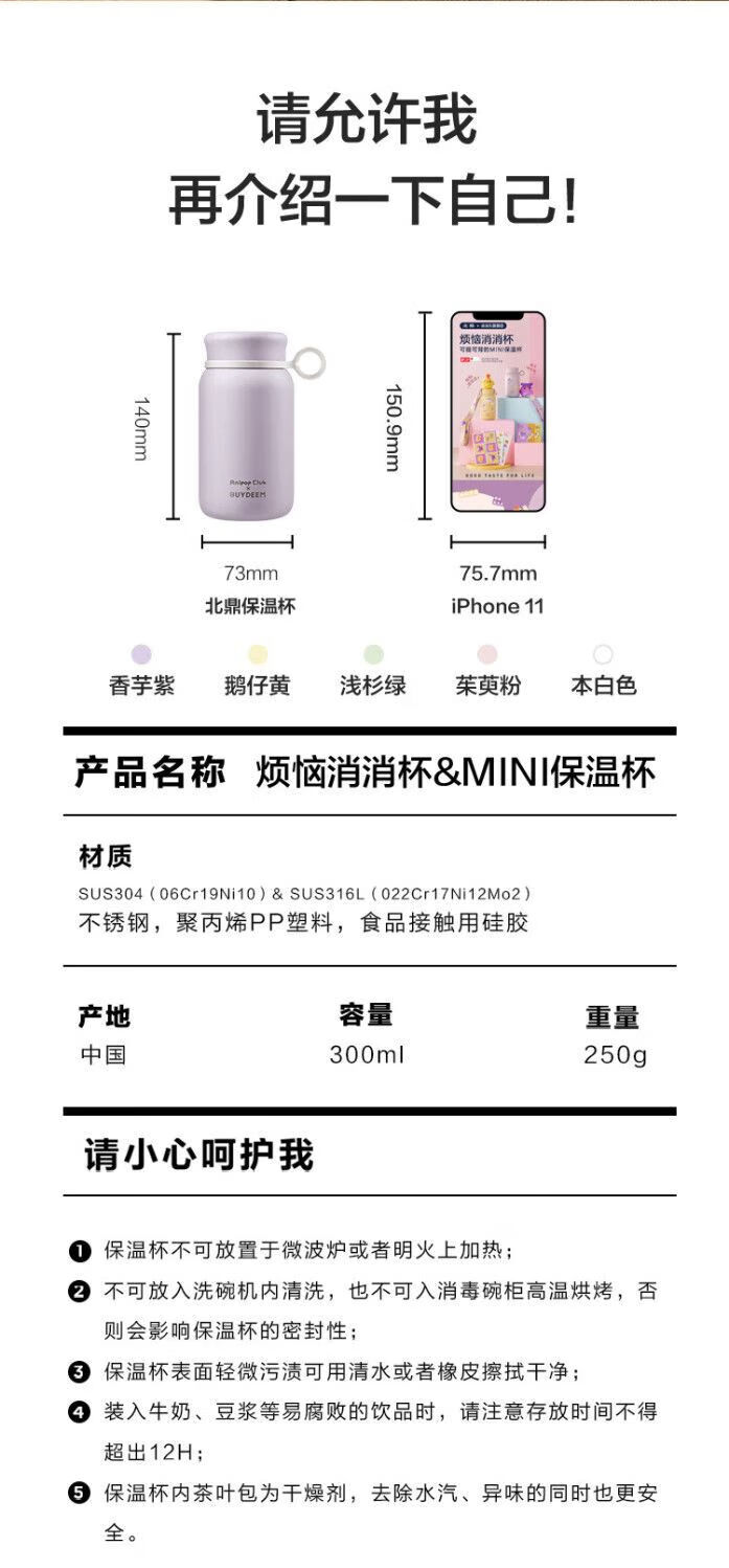 商品名称:(巨邦佑)R+北鼎(Buydeem)MINI 保温杯 300ml 男女家用茶杯水杯便携儿童保冷保温水杯不锈钢学生 手感舒适 清洗无忧(下单前备注颜色或联系客服)
