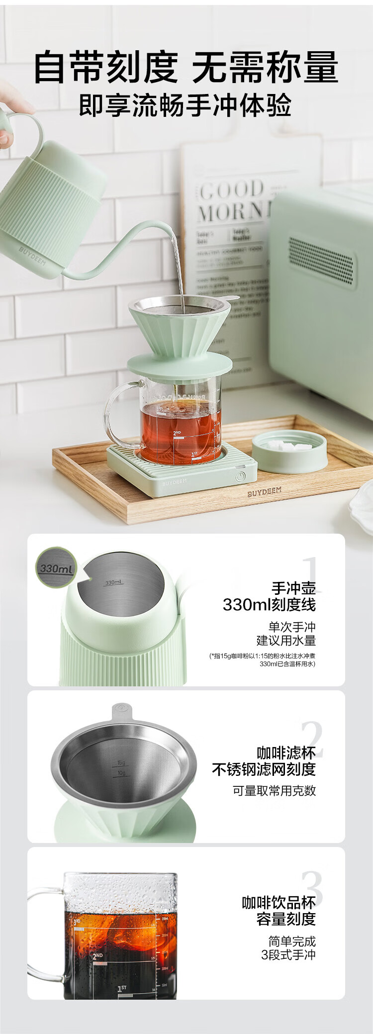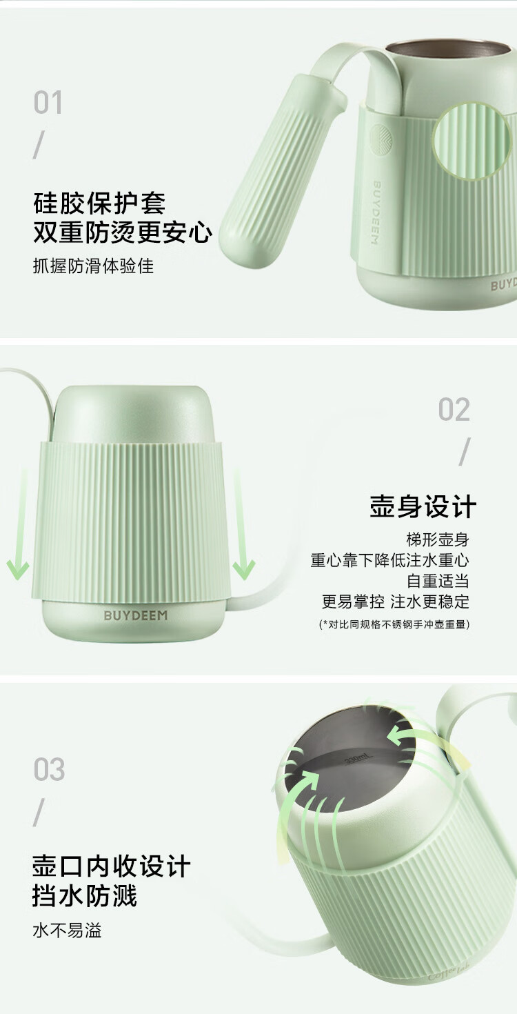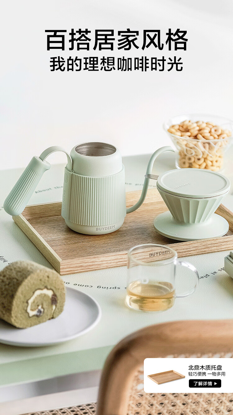 商品名称:(巨邦佑)R+北鼎(Buydeem) 咖啡手冲壶330ml长嘴壶家用挂耳细口壶 便携 流线壶嘴 (下单前备注颜色或联系客服)