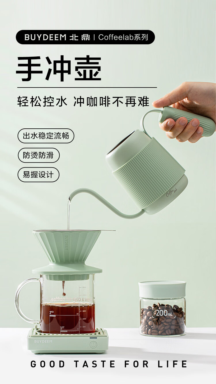 (巨邦佑)R+北鼎(Buydeem) 咖啡手冲壶330ml长嘴壶家用挂耳细口壶 便携 流线壶嘴 (下单前备注颜色或联系客服)