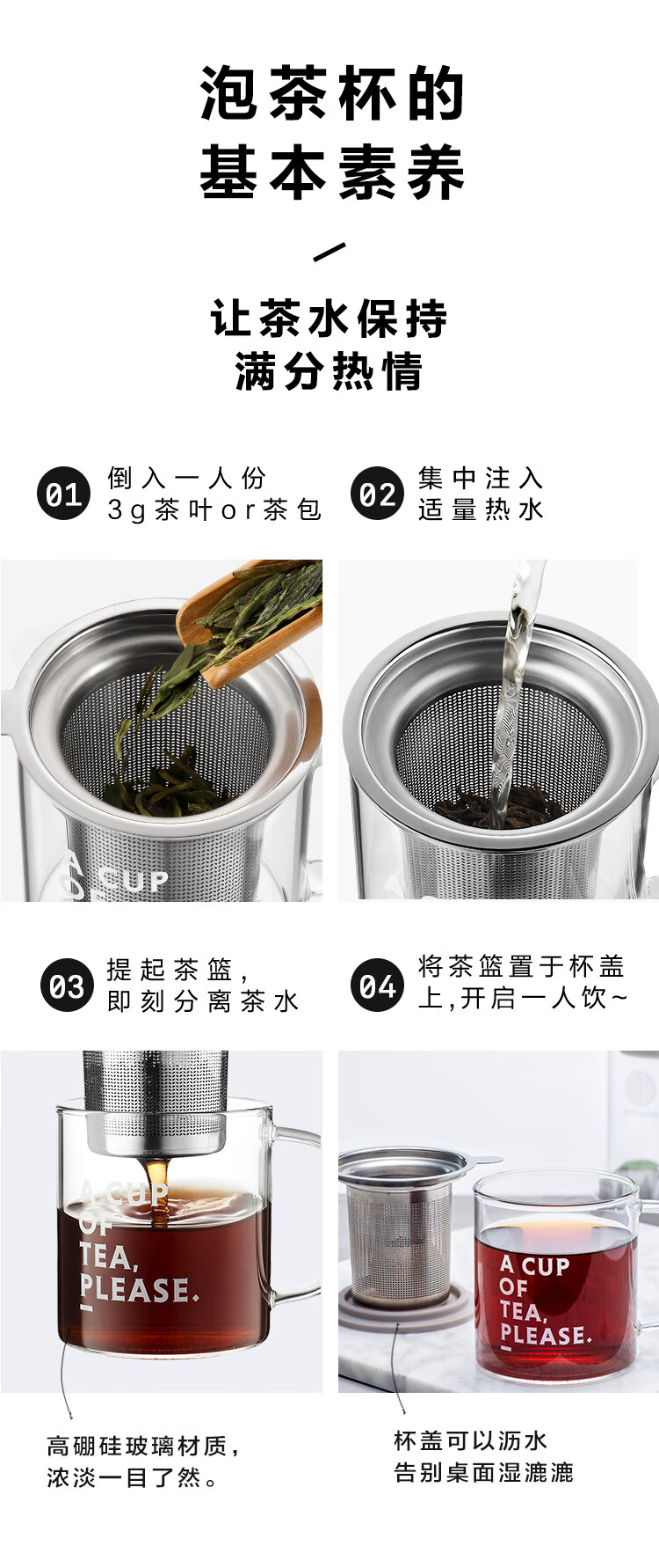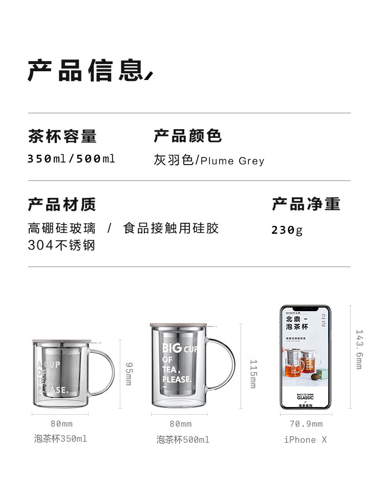 商品名称:(巨邦佑)R+北鼎(Buydeem)泡茶杯350ml 居家办公透明泡茶杯 高硼硅玻璃杯 节日送礼佳品