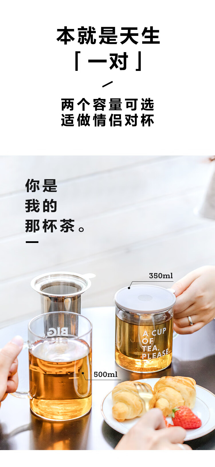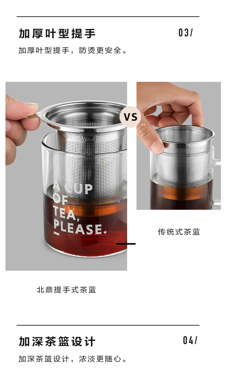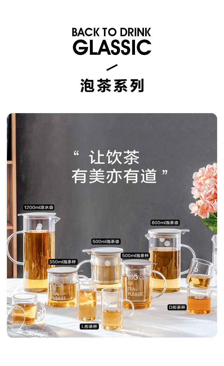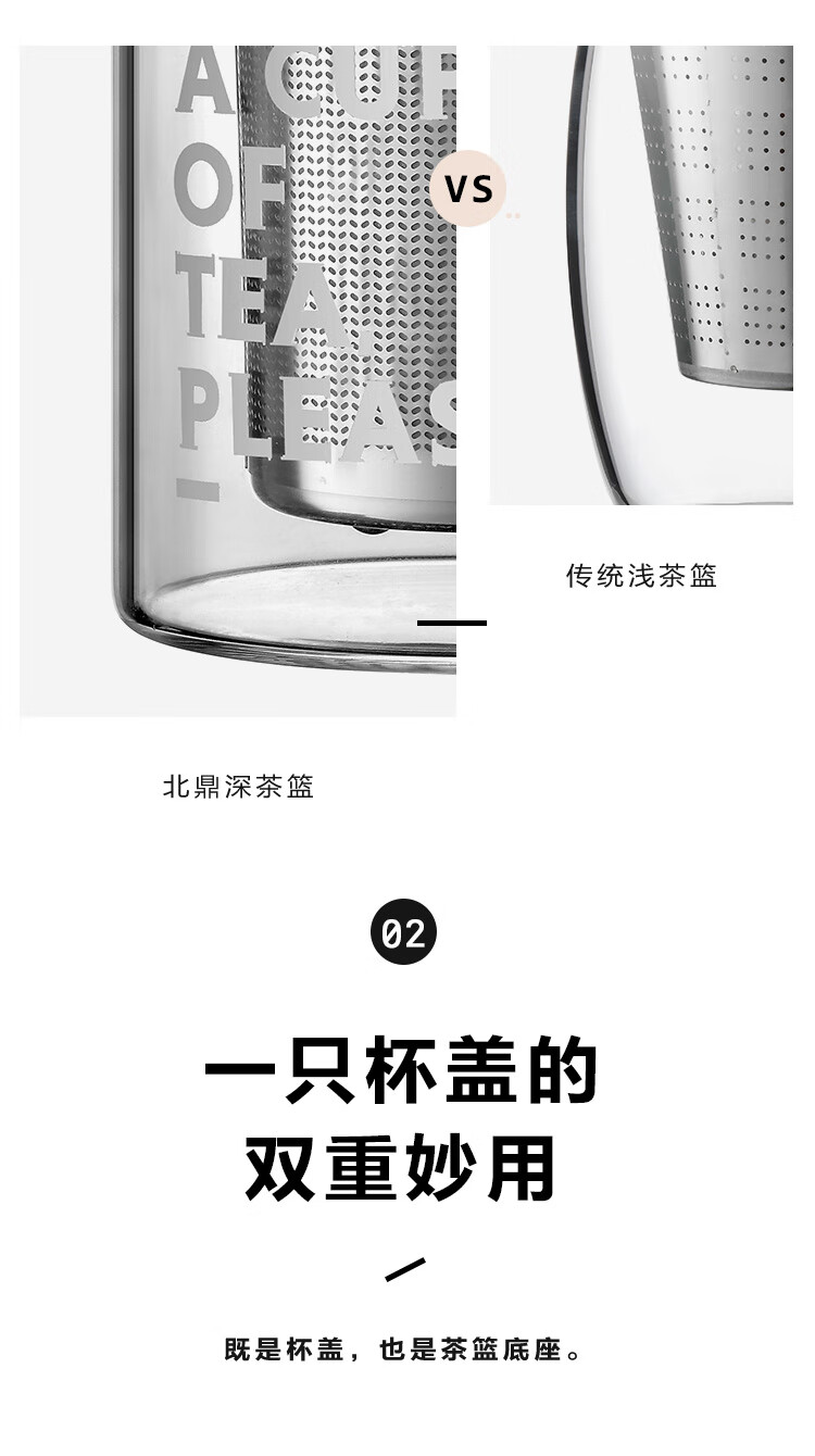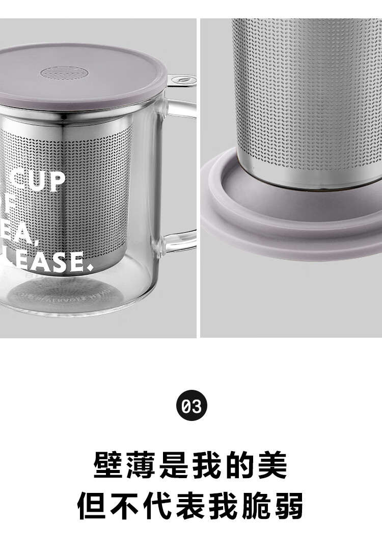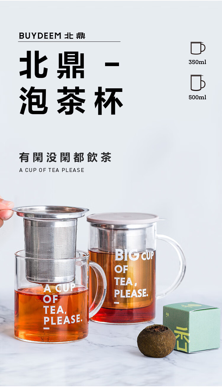 商品名称:(巨邦佑)R+北鼎(Buydeem) 泡茶杯500ml办公室家用茶具玻璃杯子带把茶水分离杯高硼硅玻璃