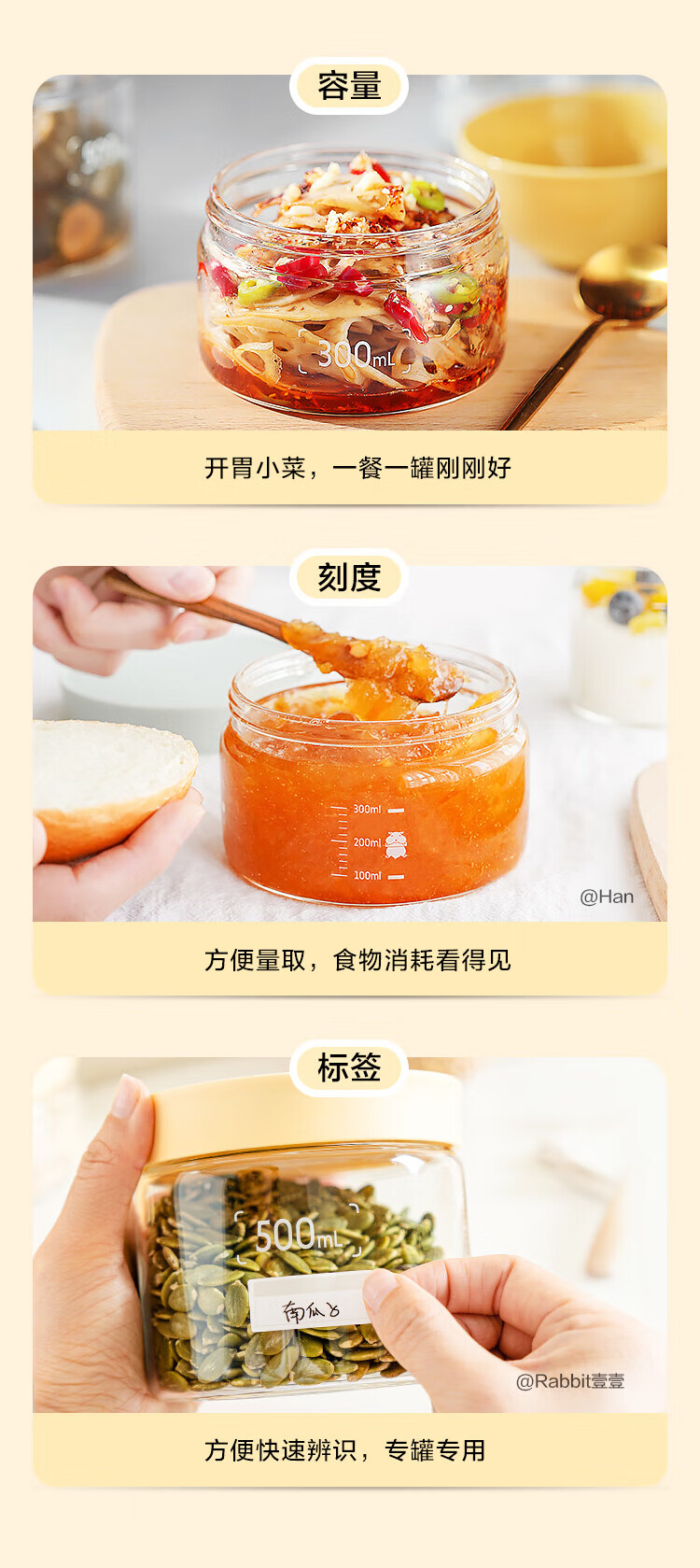 商品名称:(巨邦佑)R+北鼎(Buydeem)密封罐3个装 500ml食品级储物罐泡菜果酱陈皮保鲜罐 (下单前备注颜色或联系客服)