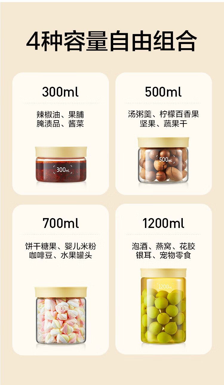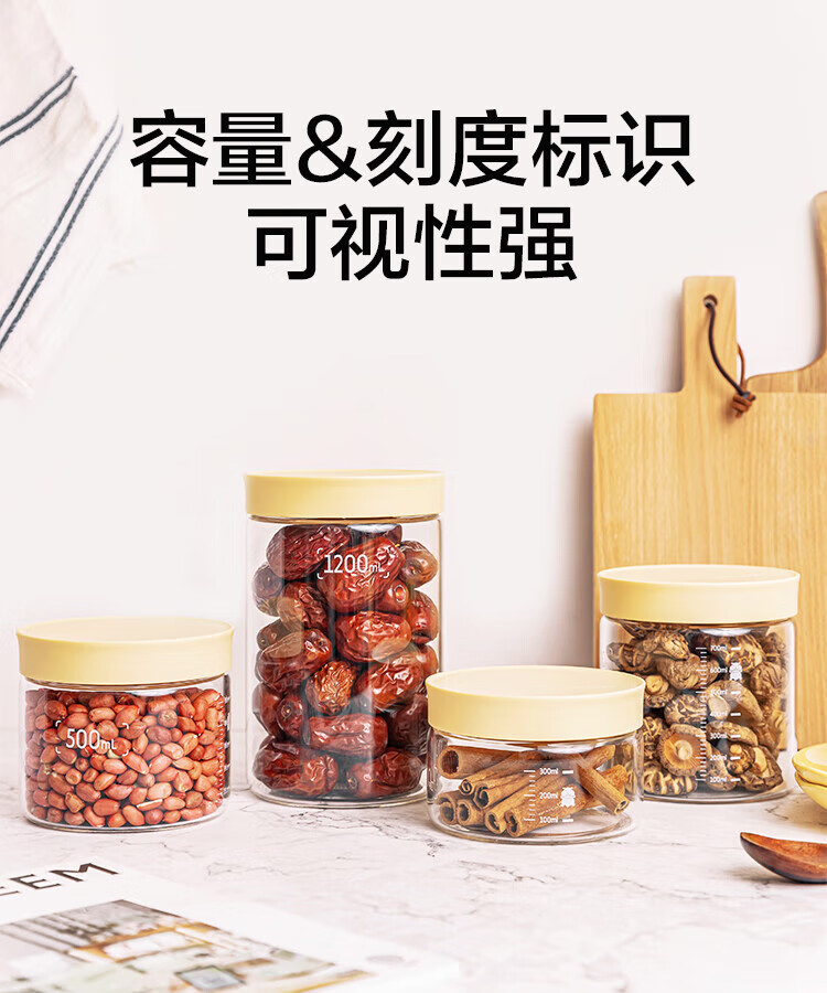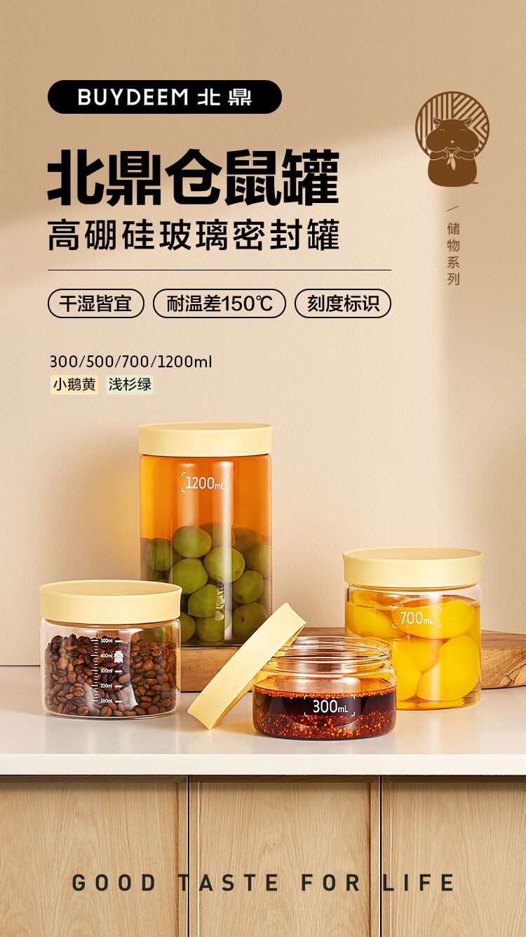 商品名称:(巨邦佑)R+北鼎(Buydeem)玻璃密封罐 700ml (2个)刻度标识 收纳保鲜蜜罐(下单前备注颜色或联系客服)