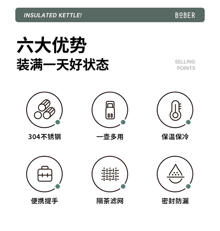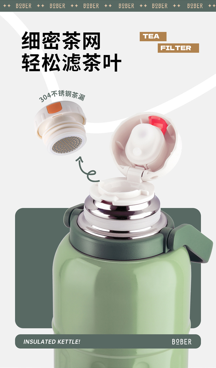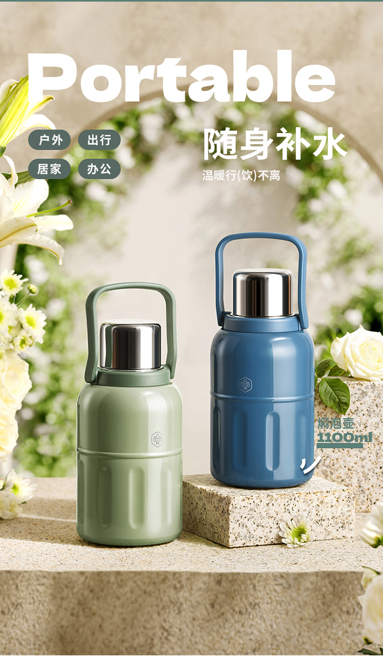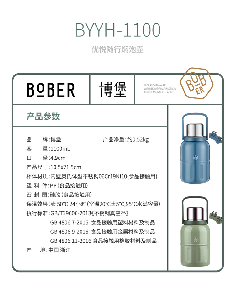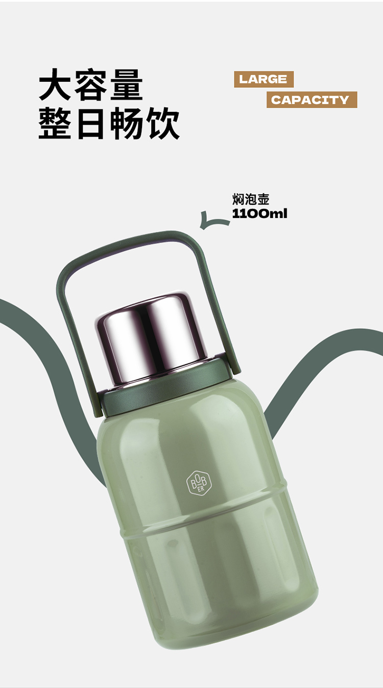 商品名称:(中合誉品)博堡优悦随行焖泡壶(绿色)BYYH-1100 焖泡壶家用水壶1100ml