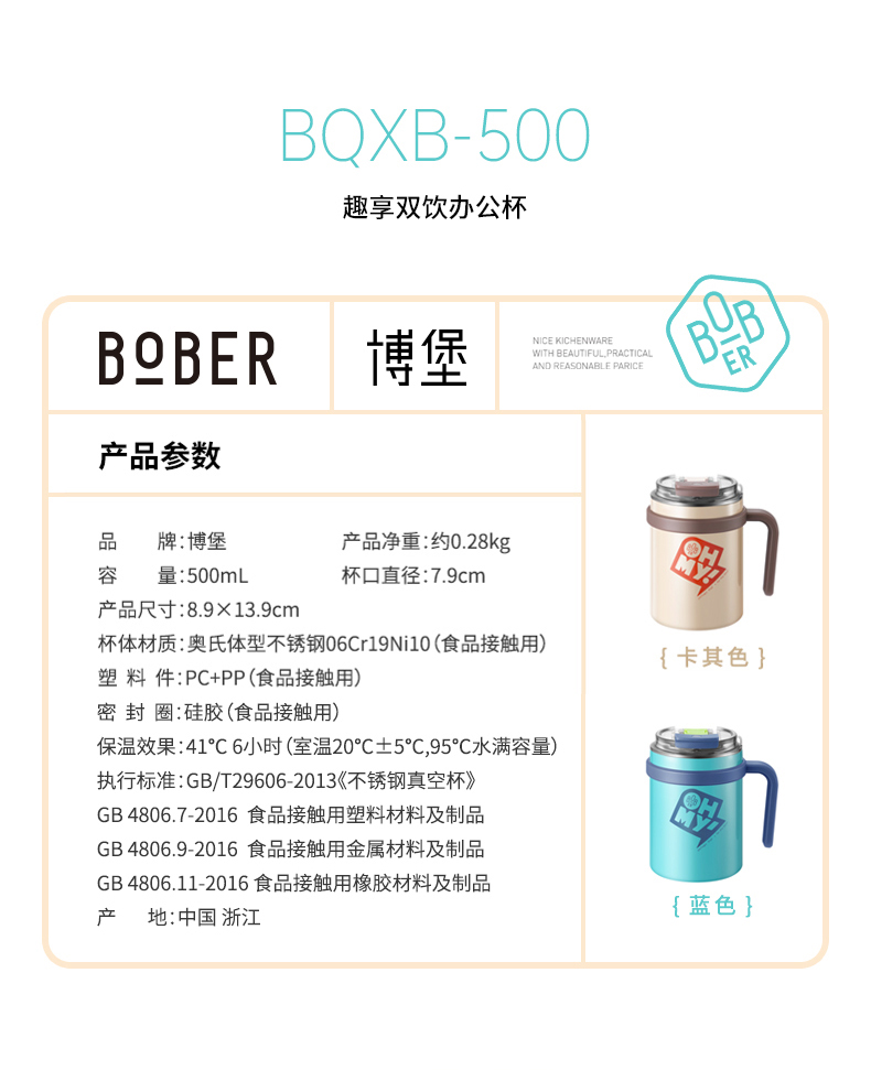 商品名称:(中合誉品)博堡趣享双饮办公杯(卡其色)BQXB-500 办公休闲如饮随行500ml