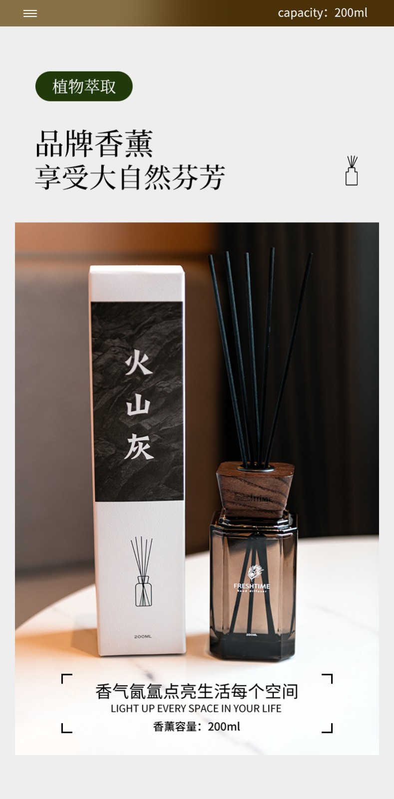 商品名称:(巨邦佑)BJ+FANNYAROMA 火山灰200ml 家用室内香氛藤条香薰空气清新持久留香