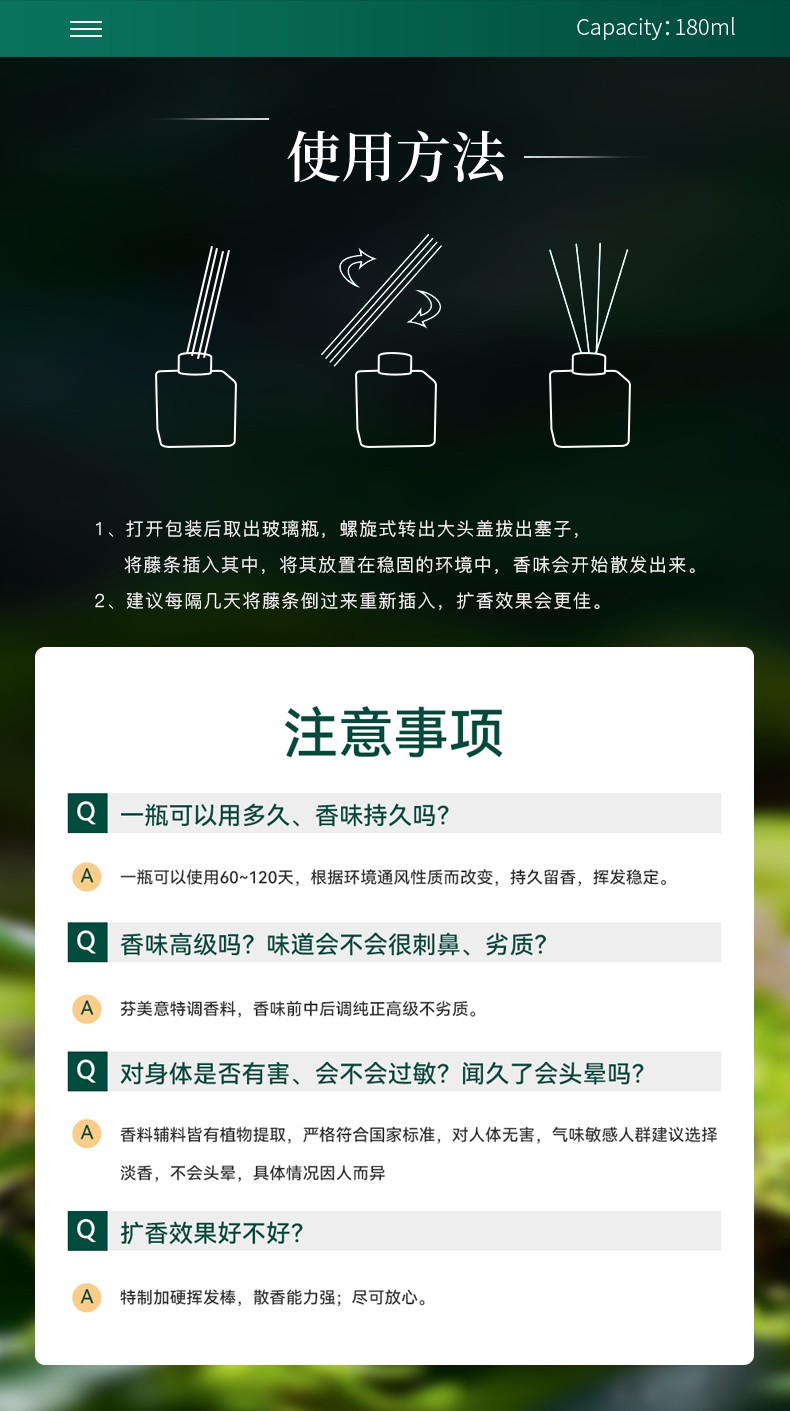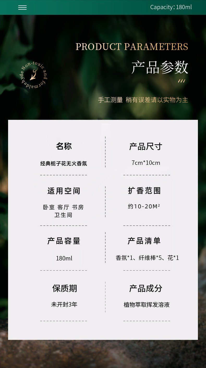 商品名称:(巨邦佑)BJ+FANNYAROMA 经典栀子花无火香氛180ml 家用室内藤条香薰祛味留香