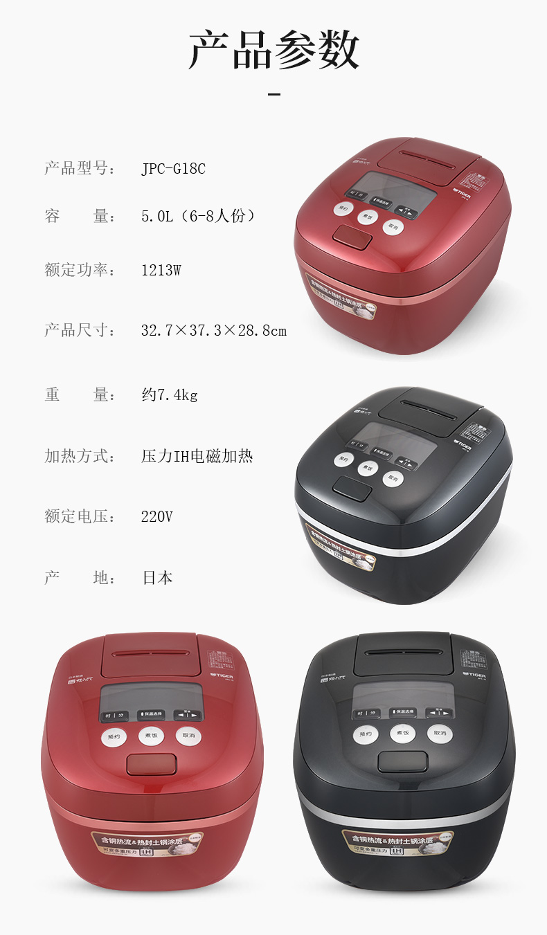 商品名称:(超运·禾贸)TIGER 虎牌 压力IH电饭煲智能多功能 JPC-G18C黑色