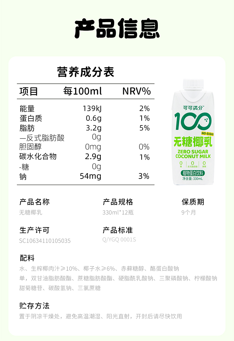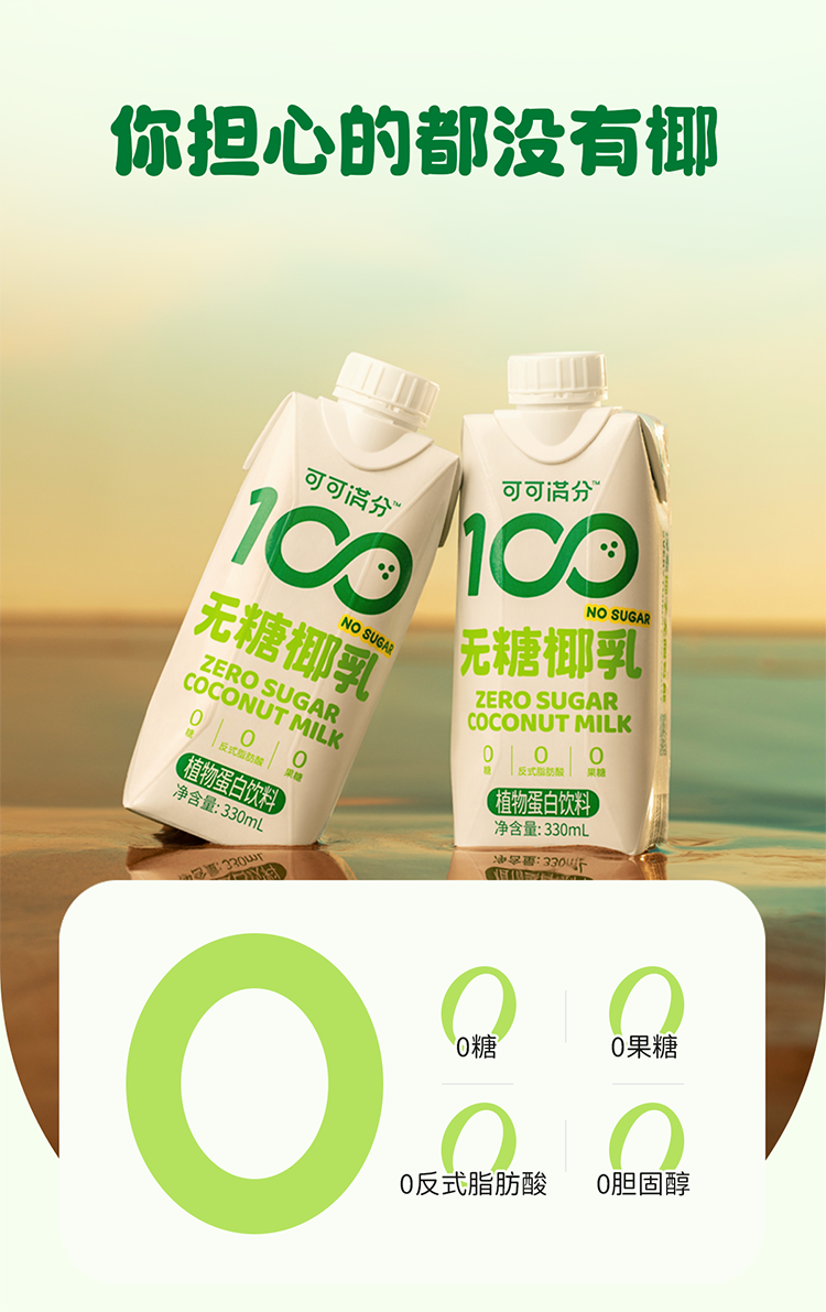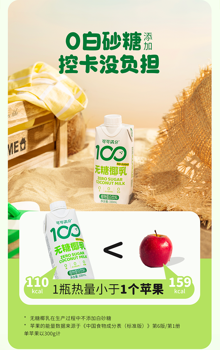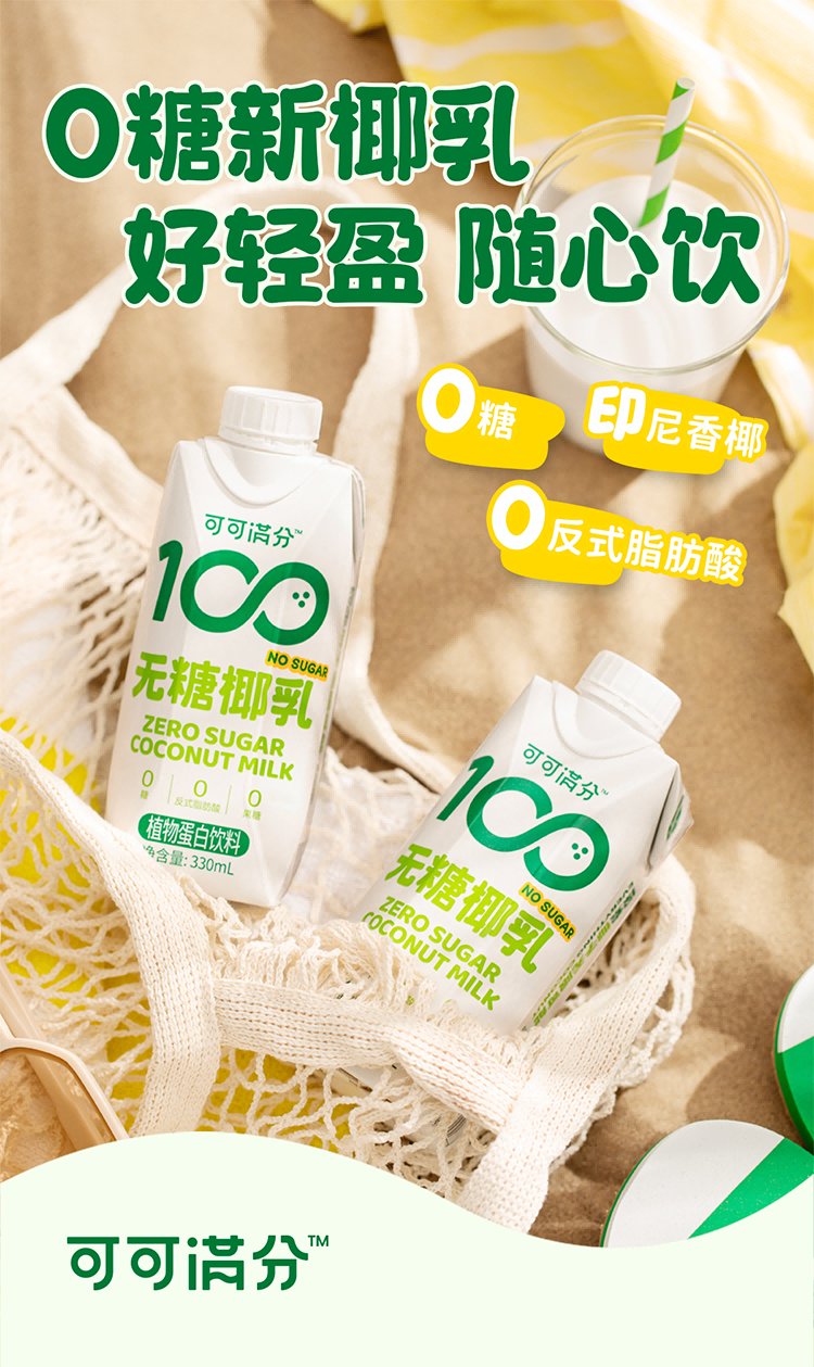 商品名称:(世星阳光)+可可满分无糖椰乳 330ml*12瓶 0糖椰奶椰汁 植物蛋白饮料 整箱装