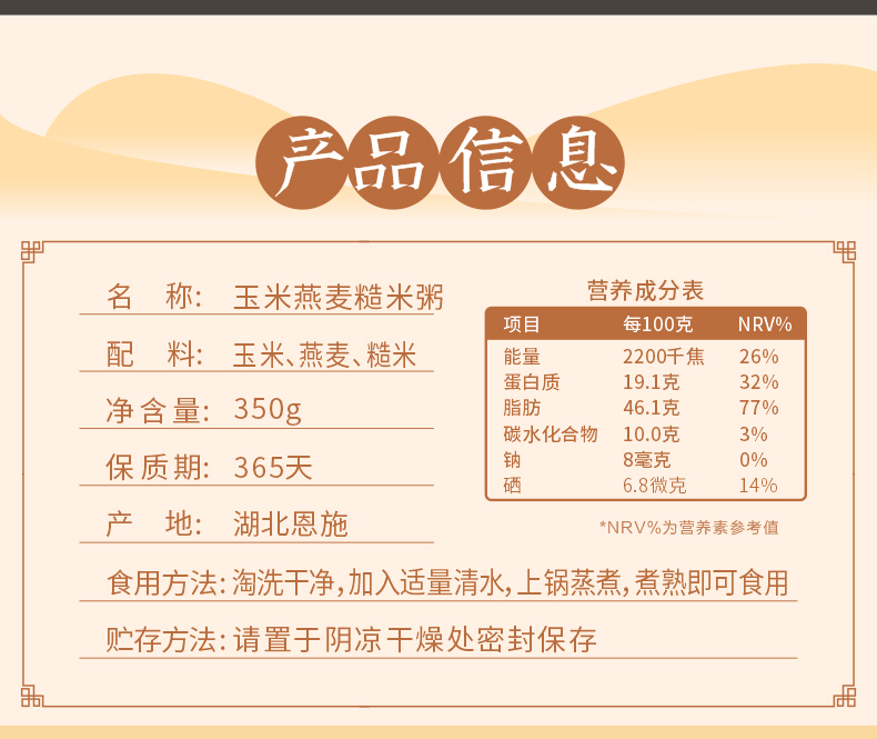 商品名称:(巨邦佑)BJ+不落一个玉米燕麦糙米粥350g*2 五谷杂粮粗粮粥